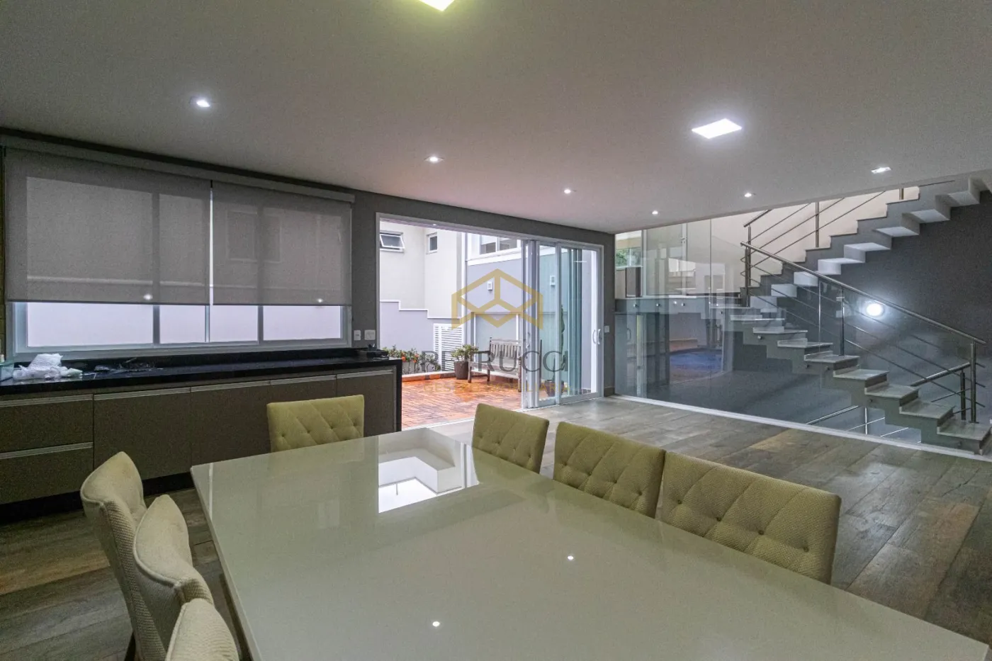 O imóvel conta com 4 suítes, sendo uma delas no piso térreo, oferecendo praticidade e acessibilidade. Possui sala de TV, escritório fechado e um living integrado à cozinha, criando um ambiente funcional e elegante. A cozinha dispõe de despensa e lavanderia, garantindo organização e praticidade no dia a dia.