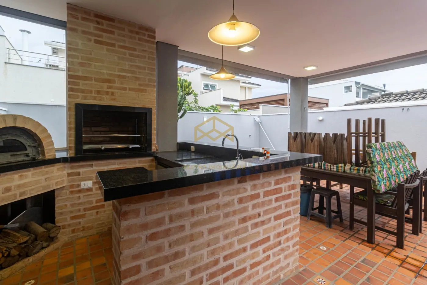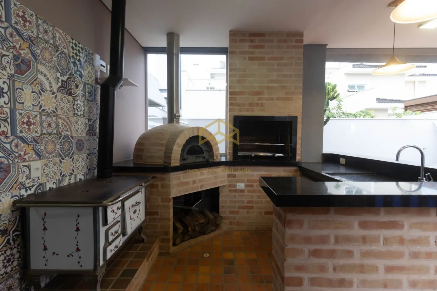 A área de lazer é completa e perfeita para receber amigos e familiares, com espaço gourmet equipado com churrasqueira, forno e fogão a lenha, além de piscina aquecida e banheiro externo de apoio.