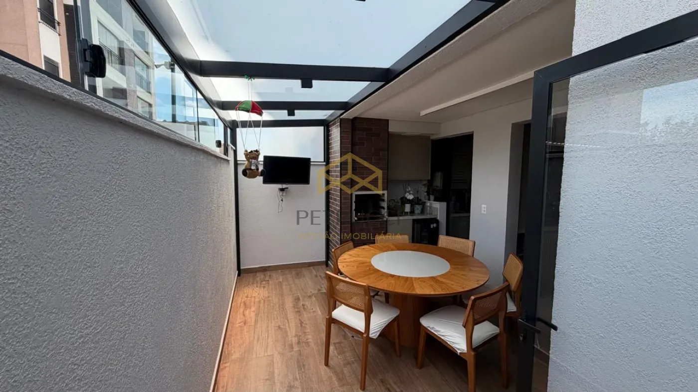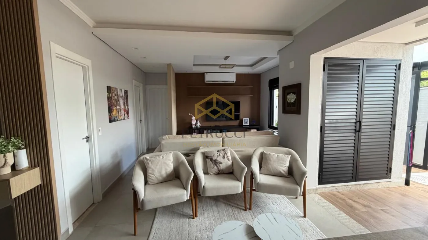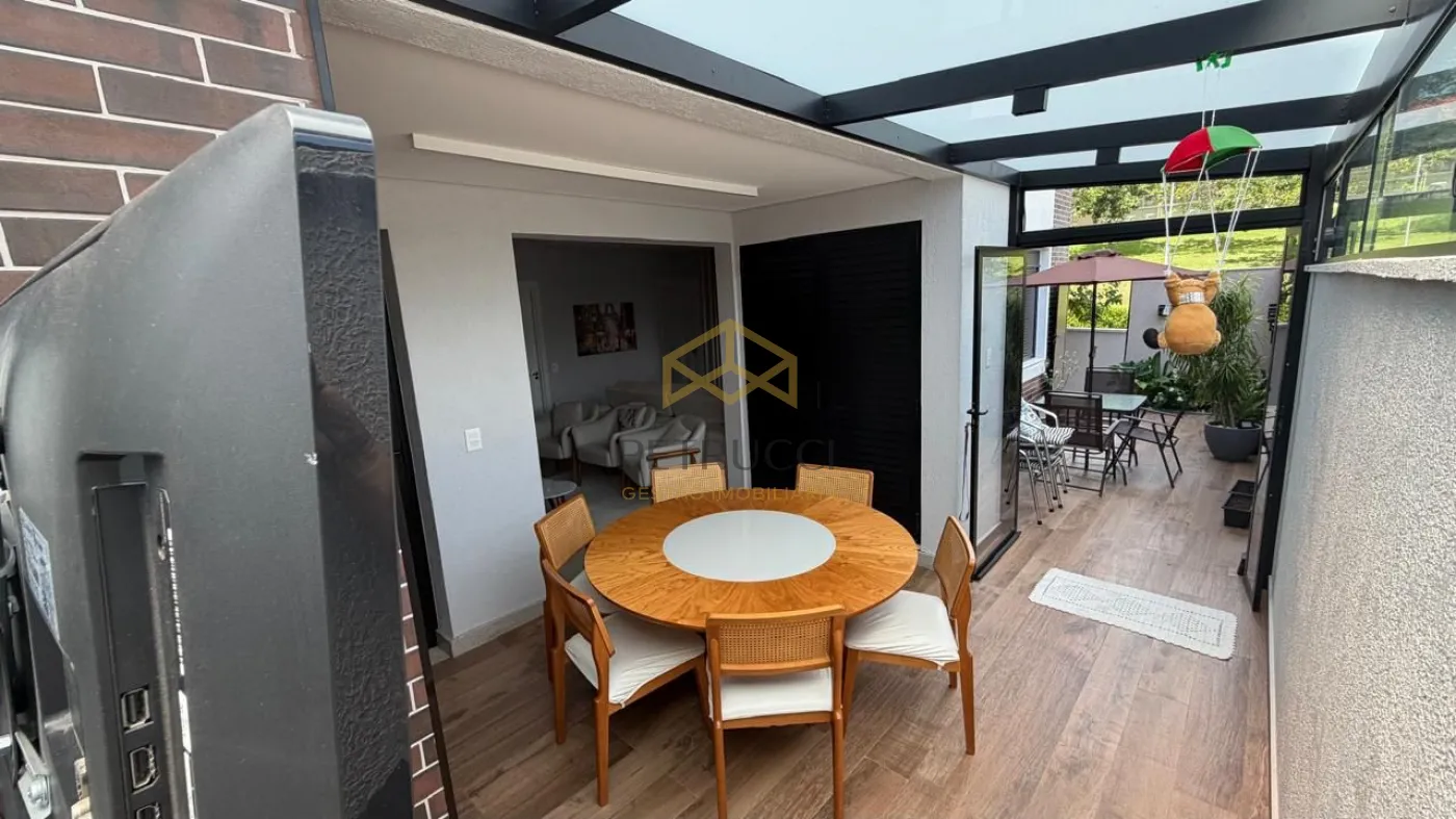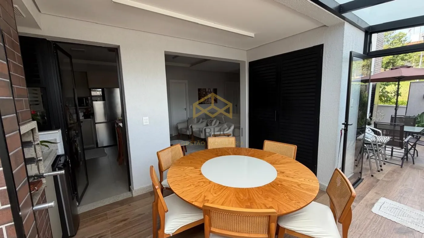 A área gourmet integrada é um dos destaques, com pergolado e cobertura de vidro, ideal para momentos de lazer e convivência. O imóvel possui ar-condicionado e móveis planejados em todos os ambientes.