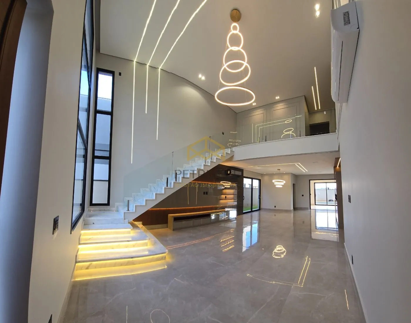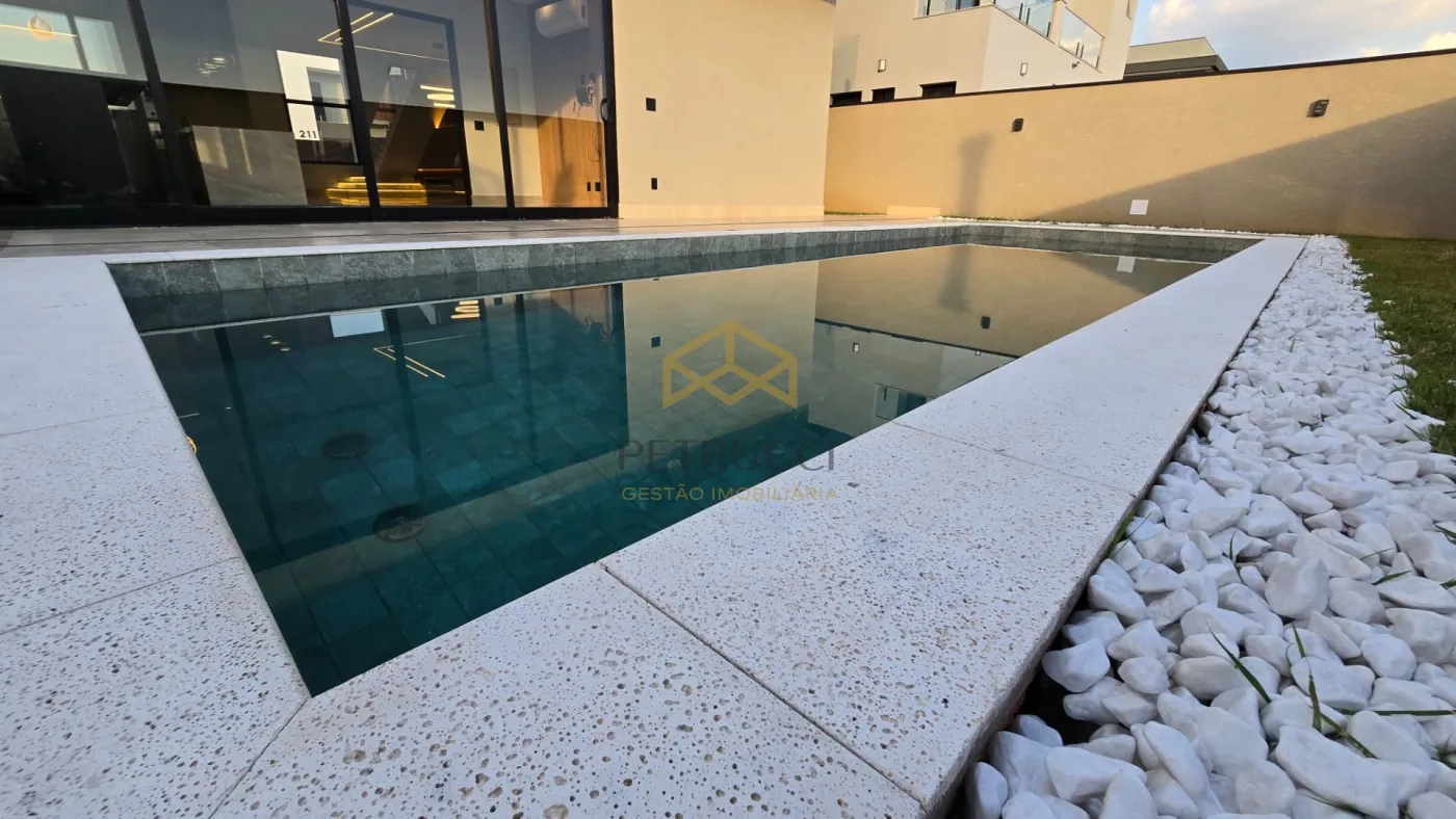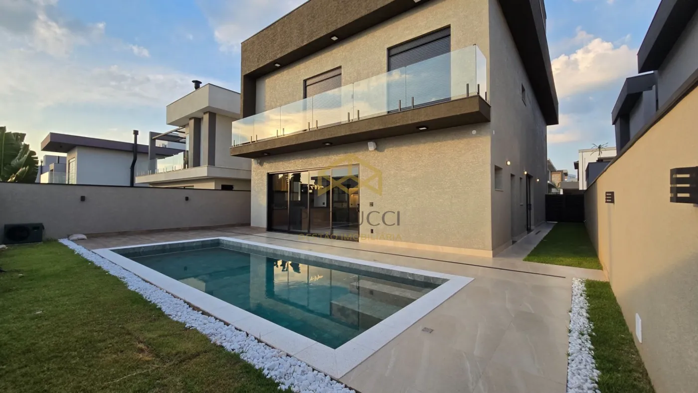 Entre os diferenciais, a casa oferece lavabo, banheiro de apoio à piscina, energia fotovoltaica, sistema de som por ambiente, automação, ar-condicionado em todos os cômodos, iluminação funcional e decorativa, além de piscina aquecida, churrasqueira e jardim já iniciado.