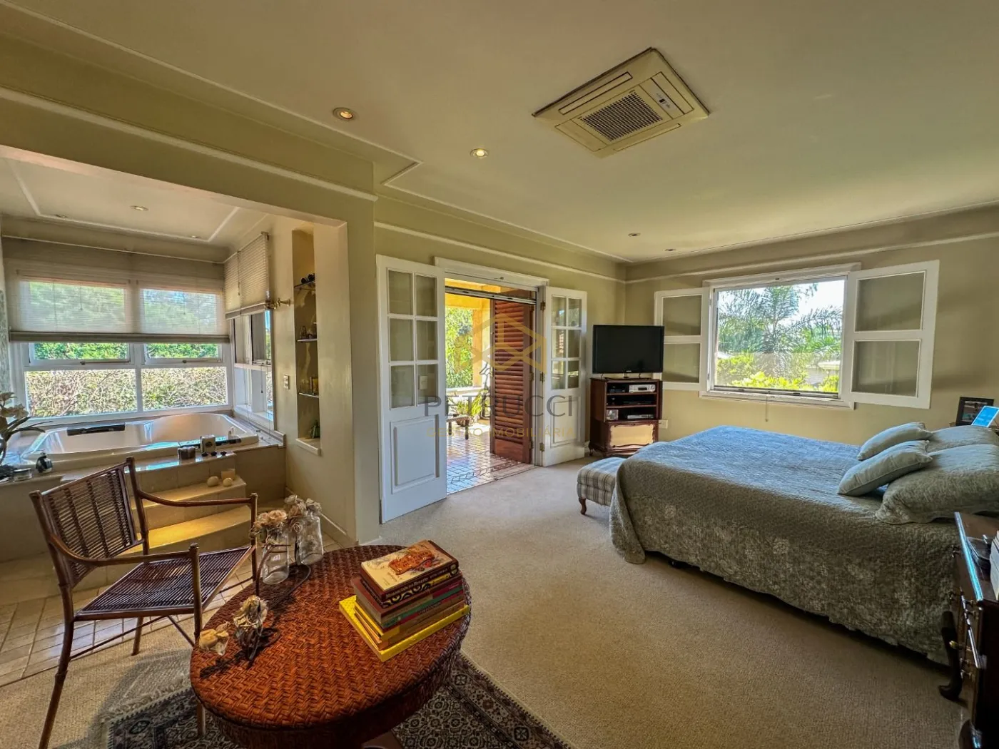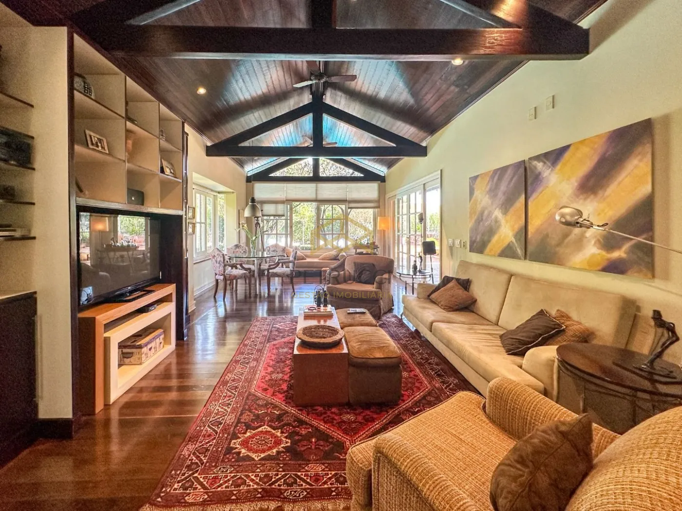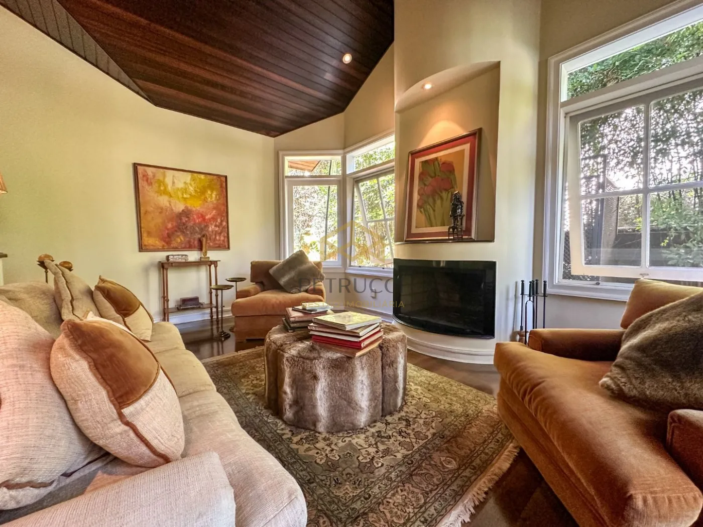 Casa de alto padrão com 680m² de área construída em terreno de 1.200m². Conta com 6 suítes, uma delas no andar térreo, e as outras 5 no andar superior, sendo uma delas master com closet, hidromassagem e varanda, outras 2 suítes com closet, e 2 americanas. Espetacular sala de estar com lareira, trazendo muito aconchego, sala de almoço, sala de jantar e sala de TV. O ambiente contempla grandes janelas com vista para os jardins e quintal da residência.