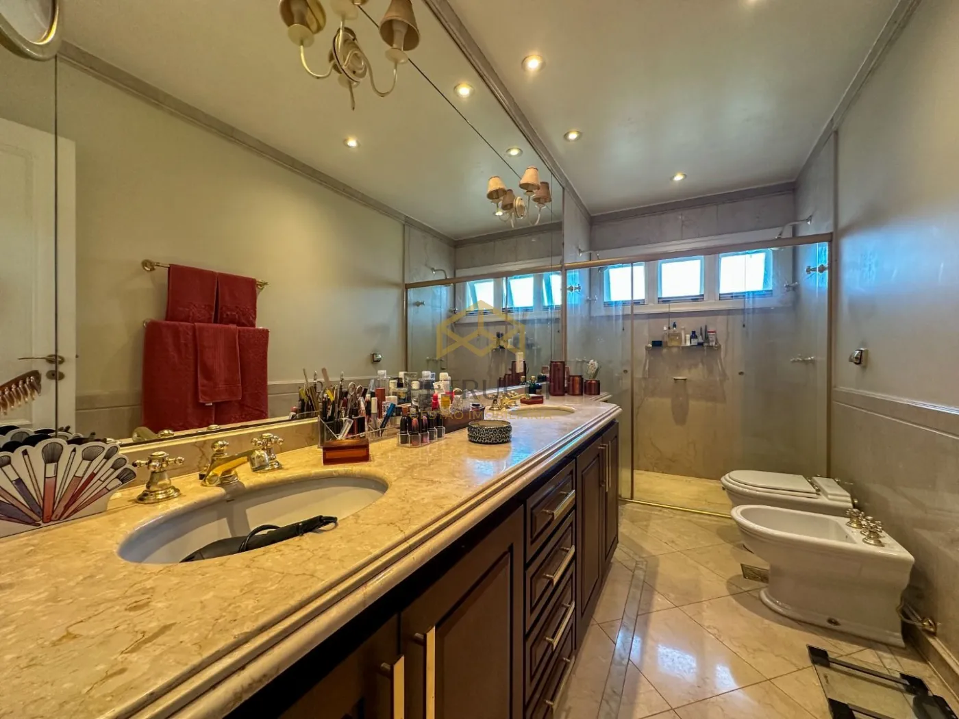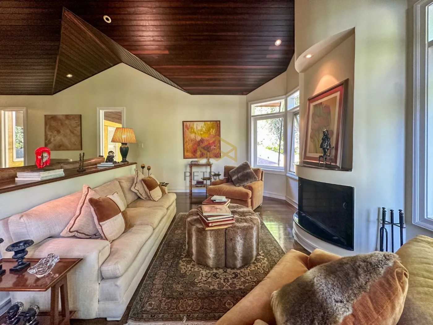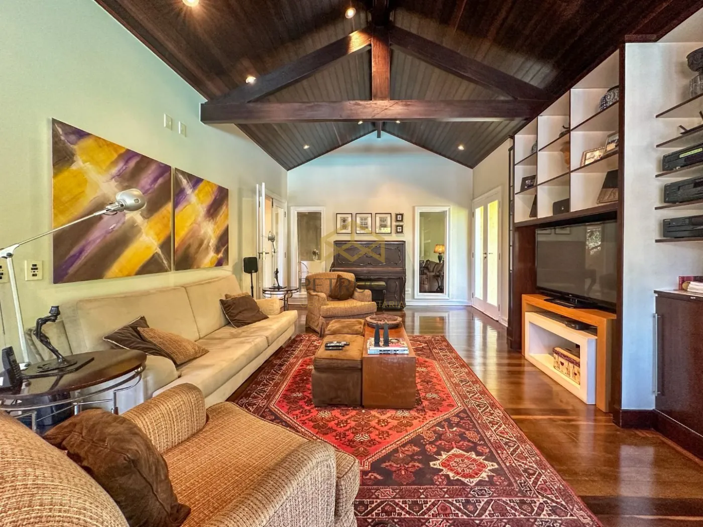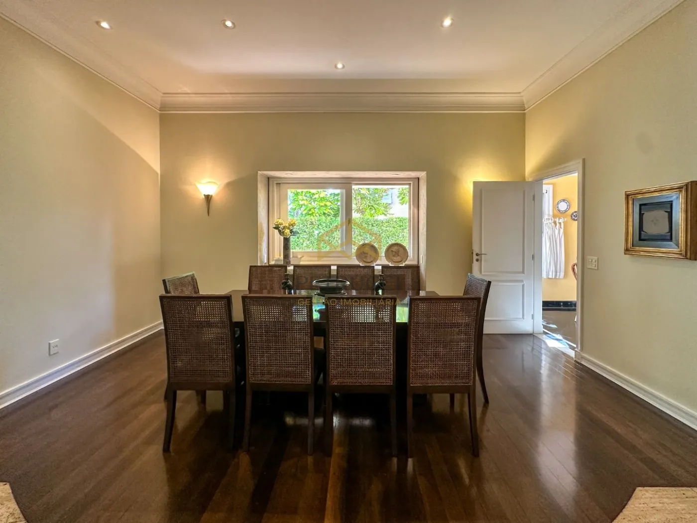 Casa de alto padrão com 680m² de área construída em terreno de 1.200m². Conta com 6 suítes, uma delas no andar térreo, e as outras 5 no andar superior, sendo uma delas master com closet, hidromassagem e varanda, outras 2 suítes com closet, e 2 americanas. Espetacular sala de estar com lareira, trazendo muito aconchego, sala de almoço, sala de jantar e sala de TV. O ambiente contempla grandes janelas com vista para os jardins e quintal da residência.