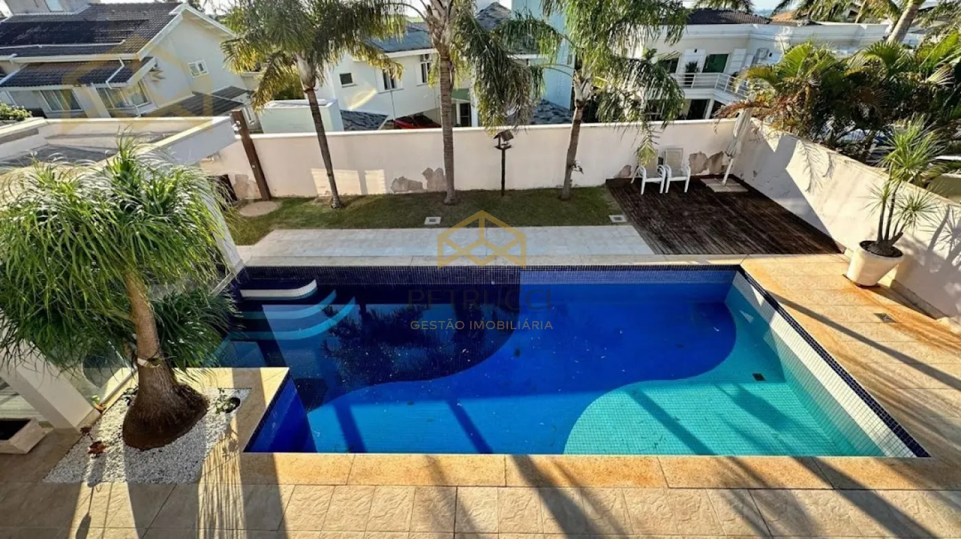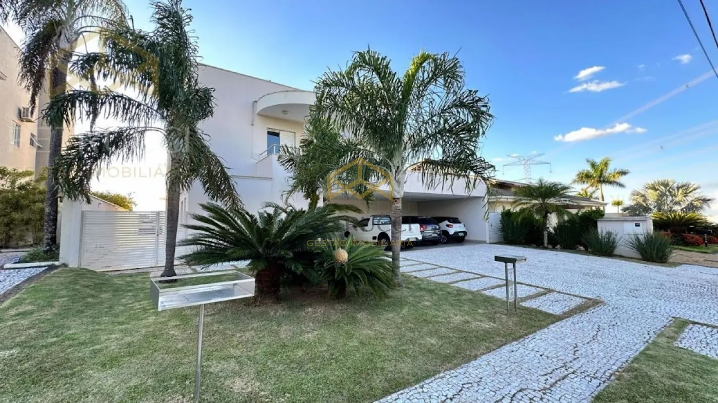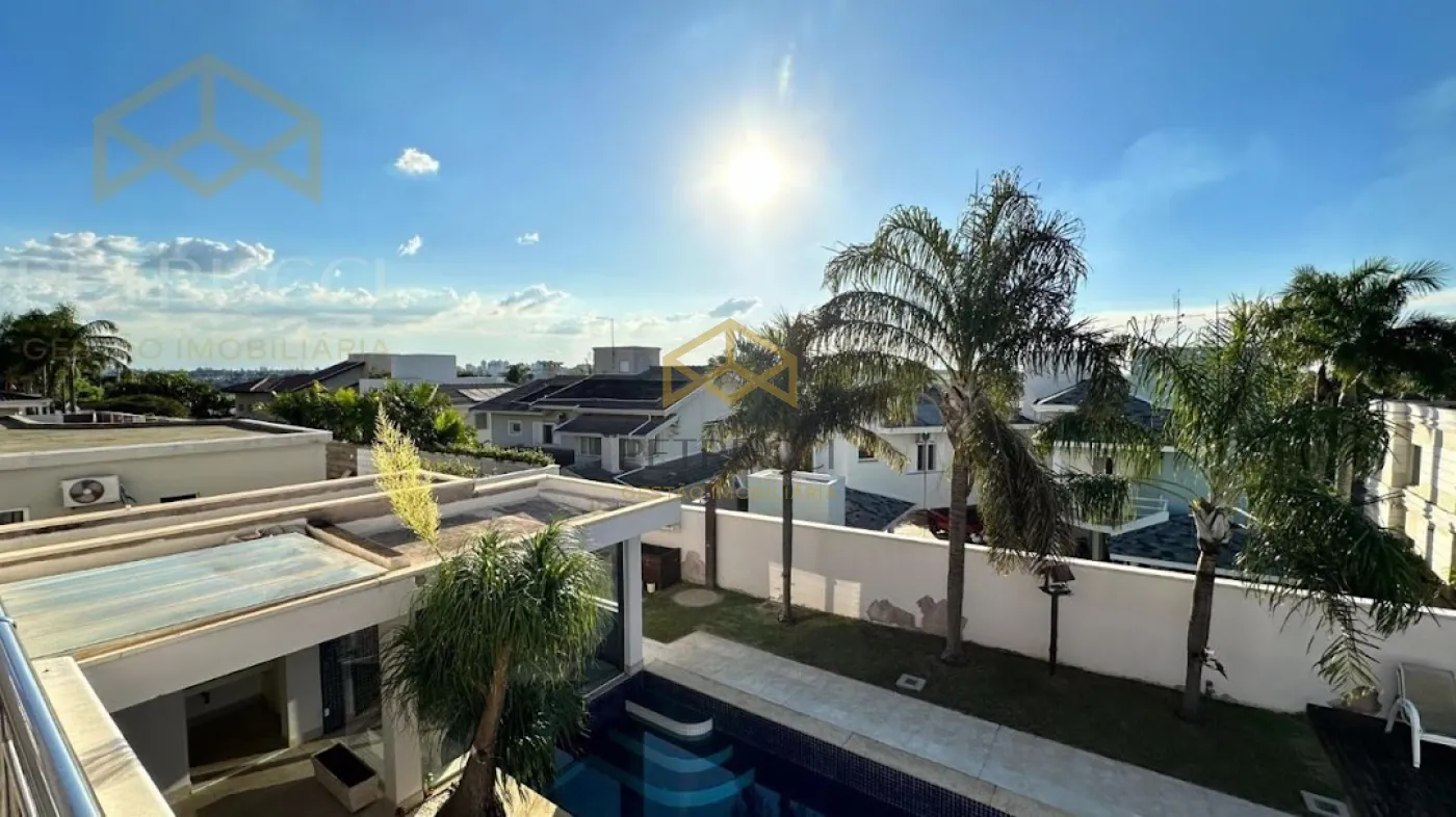 Casa com terreno de 750m² e de área construída de 495m² com 4 dormitórios sendo 3 suítes, 7 banheiros, vagas cobertas, ar-condicionado, sendo uma delas master com banheira, sala com pé direito duplo para 2 ambientes,sala de Tv, sauna, piscina e com 6 vagas de garagem, no condomínio mais desejado da cidade, com vista privilegiada!