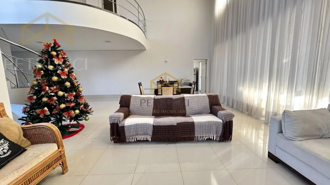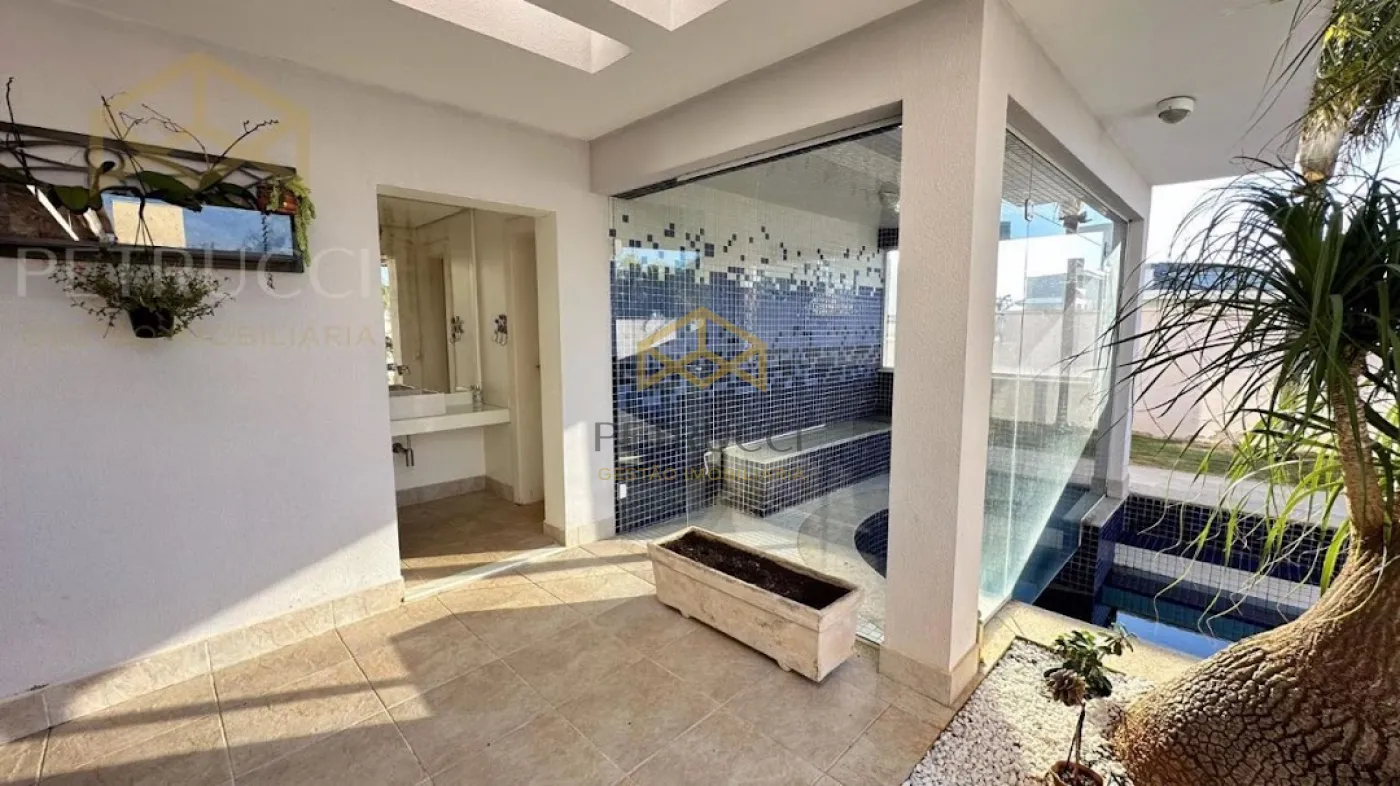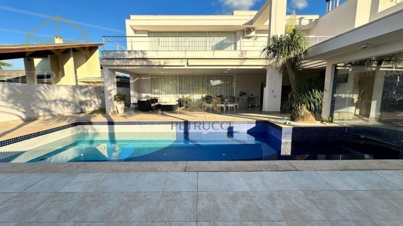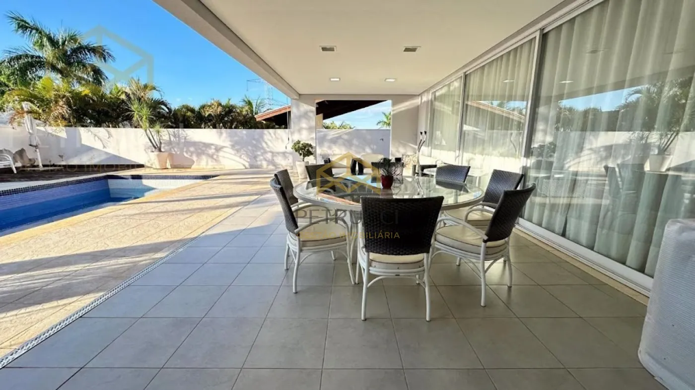 Casa com terreno de 750m² e de área construída de 495m² com 4 dormitórios sendo 3 suítes, 7 banheiros, vagas cobertas, ar-condicionado, sendo uma delas master com banheira, sala com pé direito duplo para 2 ambientes,sala de Tv, sauna, piscina e com 6 vagas de garagem, no condomínio mais desejado da cidade, com vista privilegiada!
