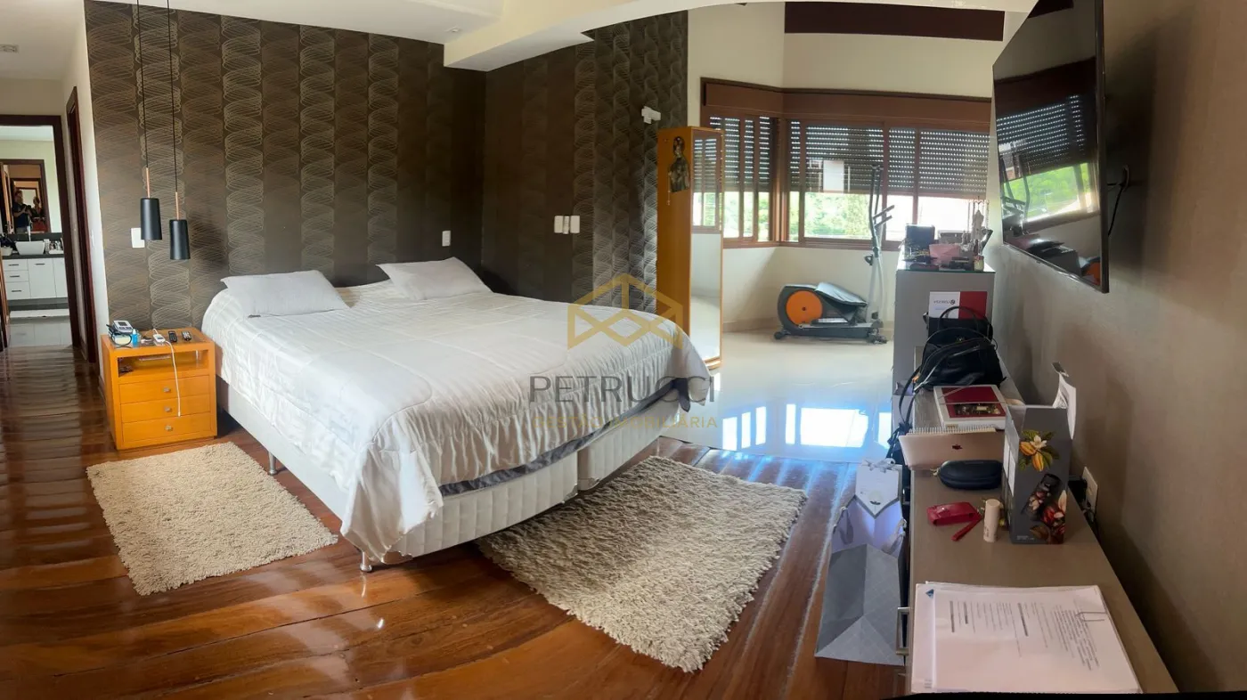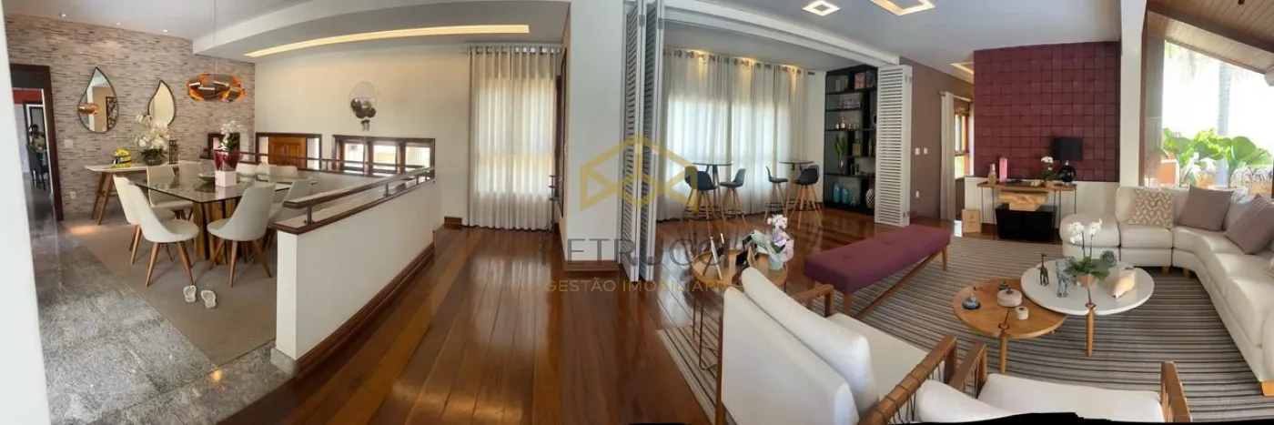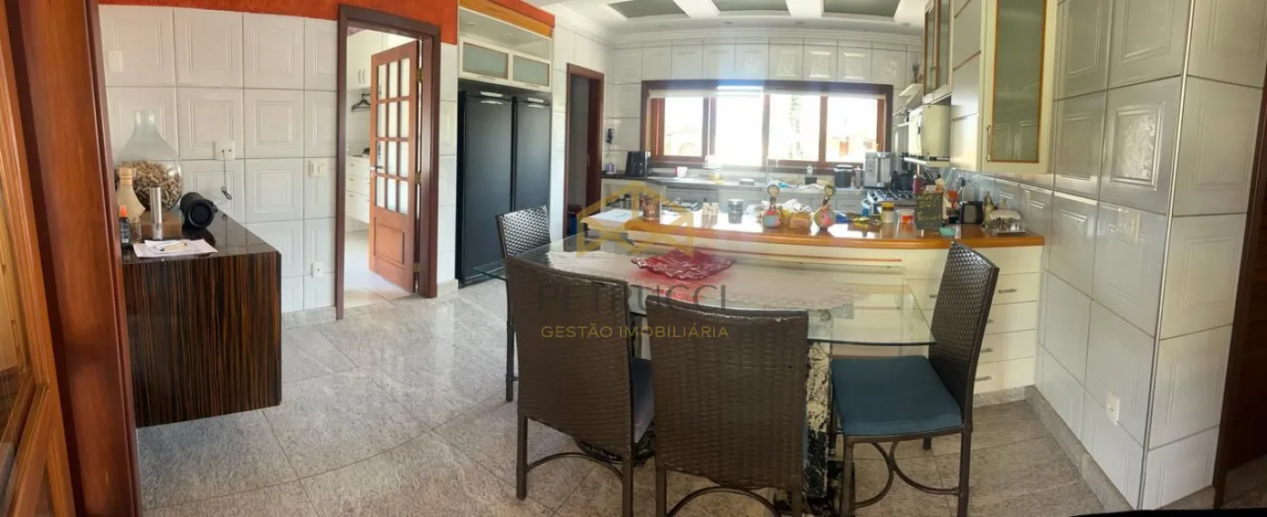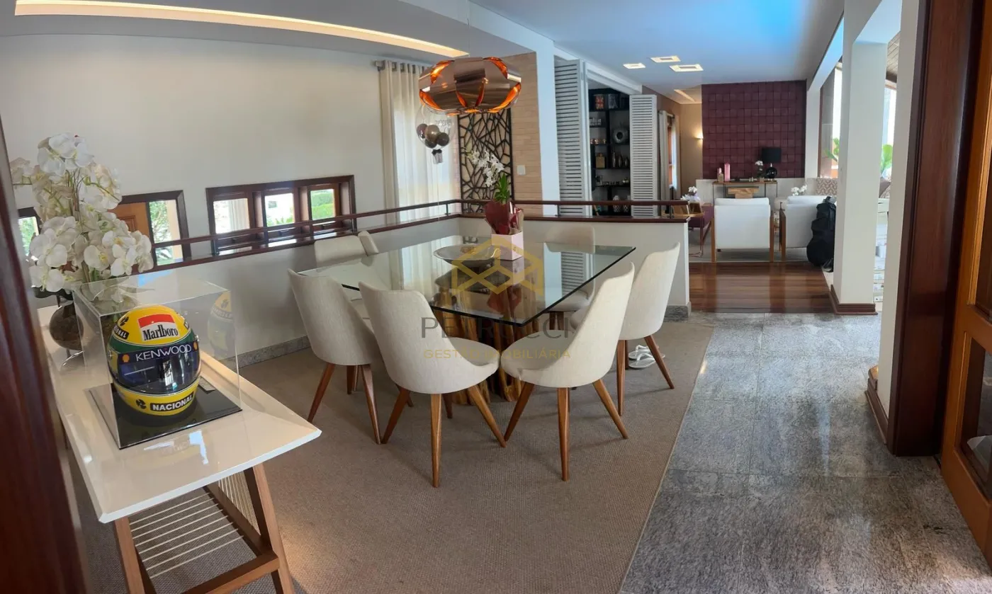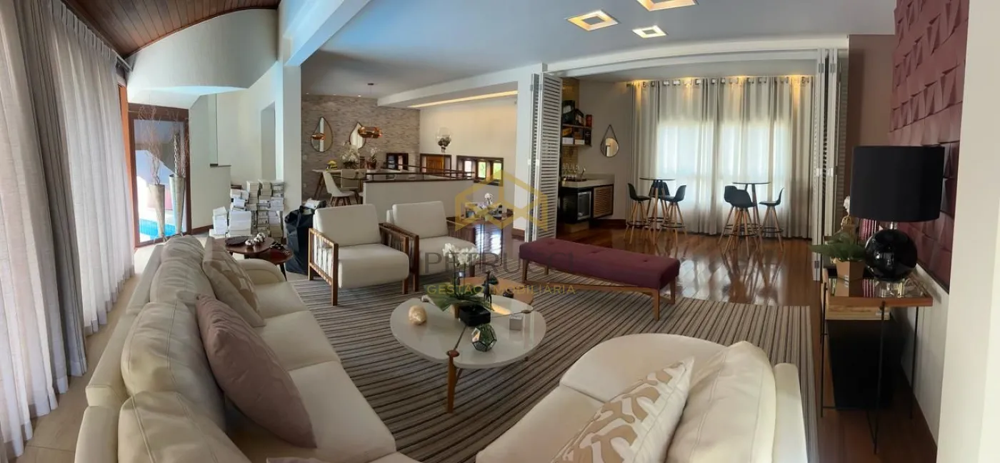 Com 3 suítes com closet na parte superior, a master com banheira, todas com planejados, ar condicionado, armários de apoio, banheiro com tábua corrida. Salas de jantar e estar com espaço sommelier, lavabo, Home theater com lareira. Área de lazer e piscina integrada ao living, e cozinha, despensa, boa lavanderia, dependência de serviço completo (quarto e banho). Área de lazer com agradável estar, churrasqueira, piscina aquecida a gás, banho em separado. Garagem para 6 vagas sendo 3 cobertas.