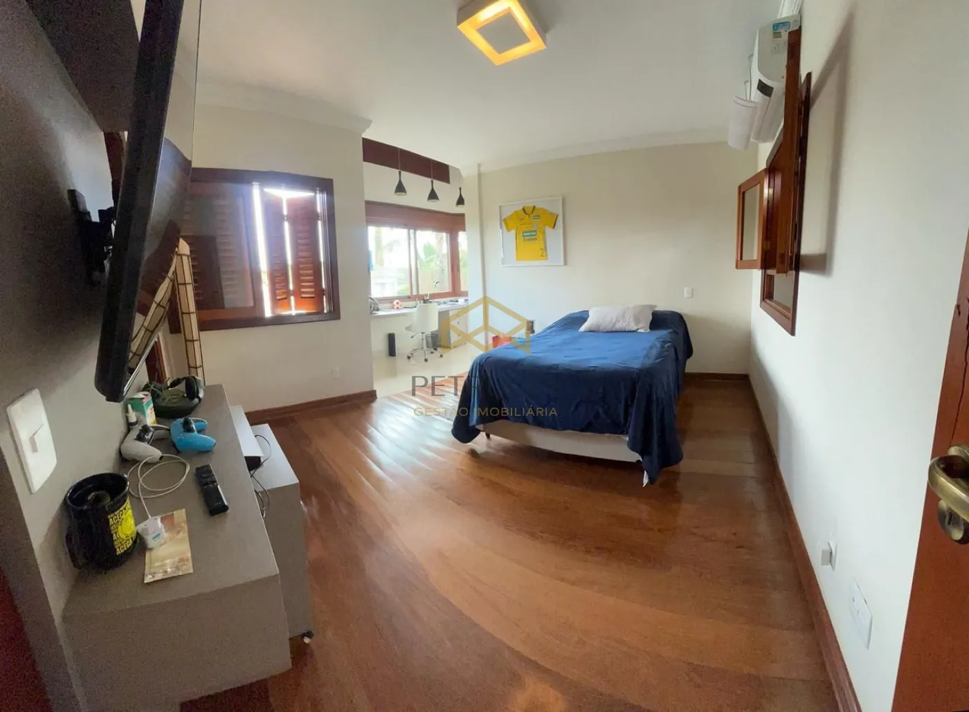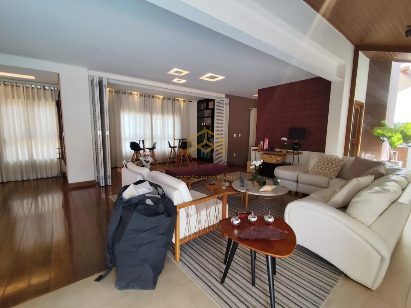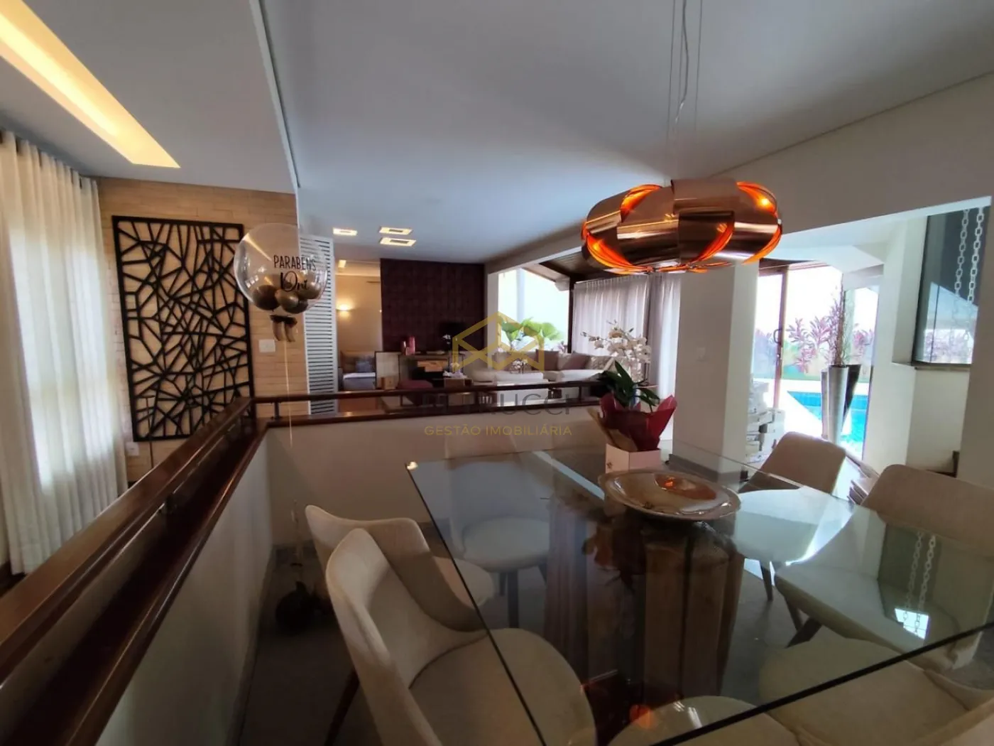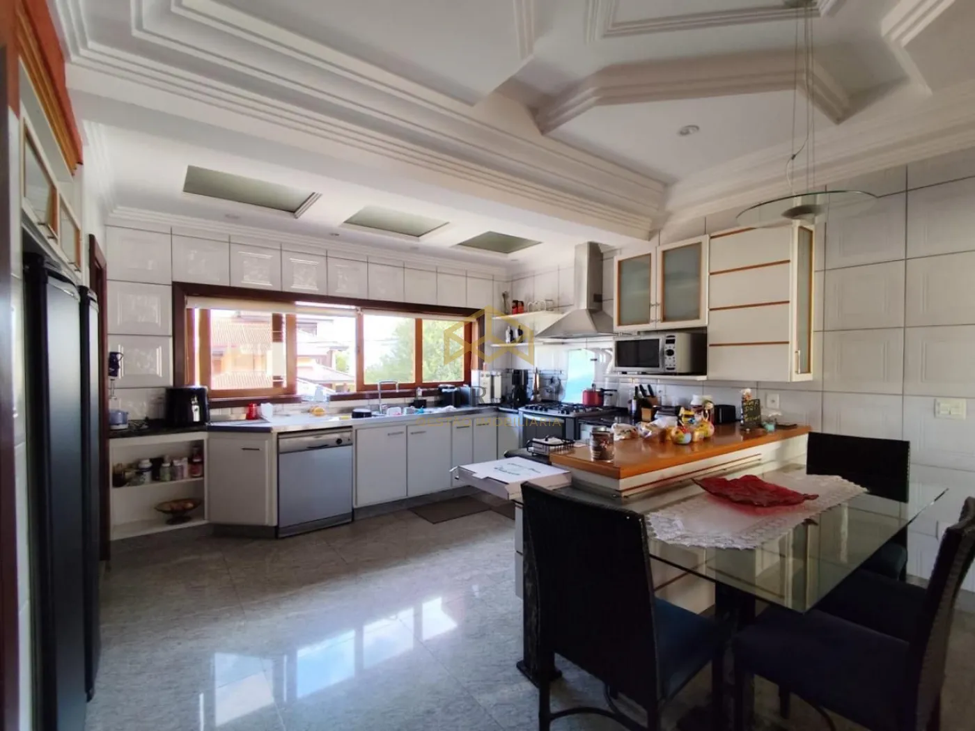 Com 3 suítes com closet na parte superior, a master com banheira, todas com planejados, ar condicionado, armários de apoio, banheiro com tábua corrida. Salas de jantar e estar com espaço sommelier, lavabo, Home theater com lareira. Área de lazer e piscina integrada ao living, e cozinha, despensa, boa lavanderia, dependência de serviço completo (quarto e banho). Área de lazer com agradável estar, churrasqueira, piscina aquecida a gás, banho em separado. Garagem para 6 vagas sendo 3 cobertas.