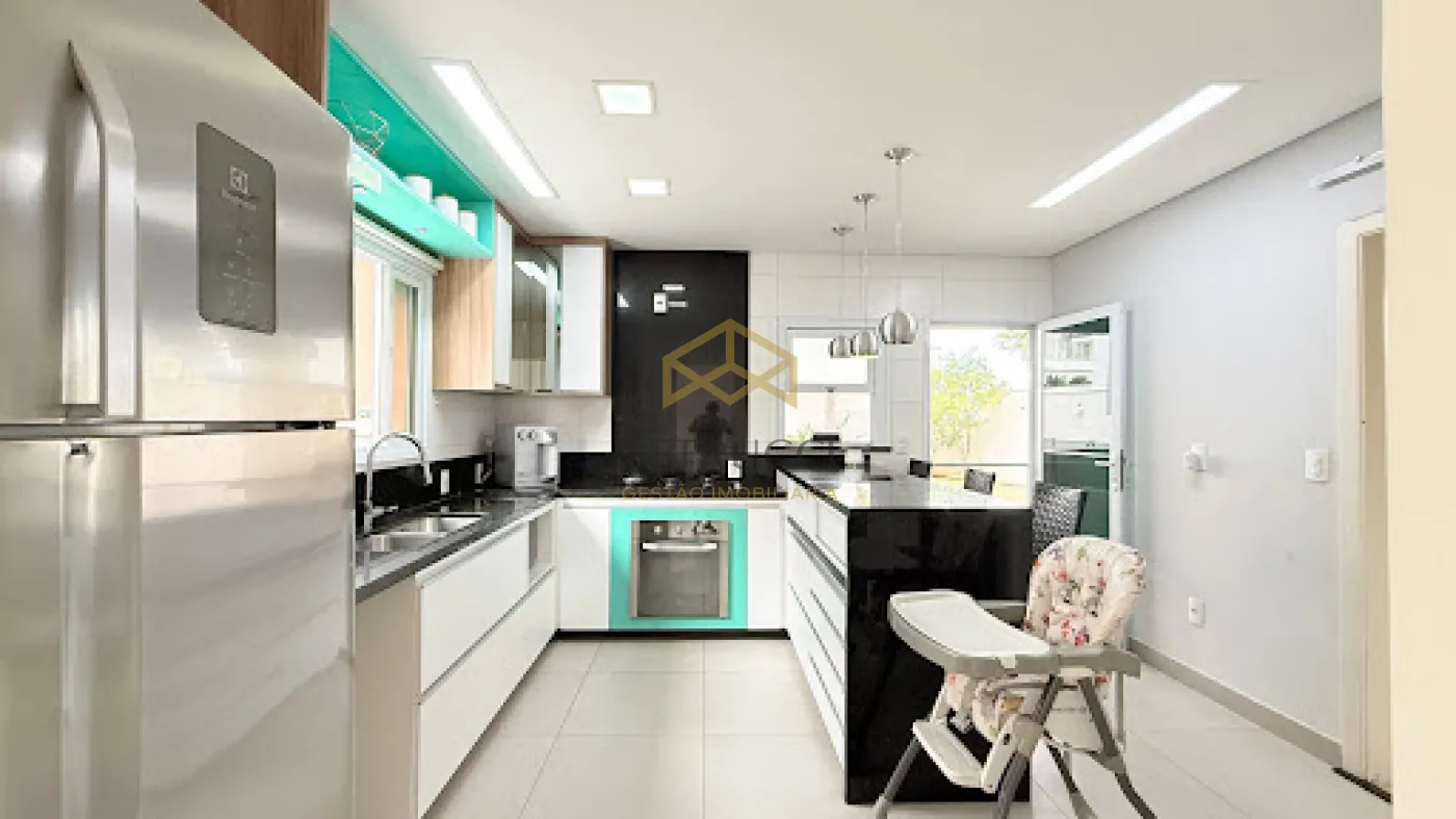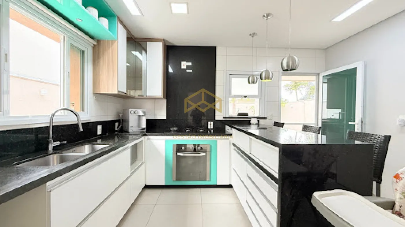 A casa conta com 4 suítes amplas, com dormitórios que se destacam pelo espaço generoso e excelente iluminação natural, proporcionando conforto e privacidade para toda a família. No piso térreo, dispõe de sala de estar aconchegante, lavabo, escritório reservado e home theater, criando ambientes funcionais e bem distribuídos. A cozinha é um verdadeiro destaque, espaçosa e planejada para quem valoriza praticidade e integração com os demais ambientes.