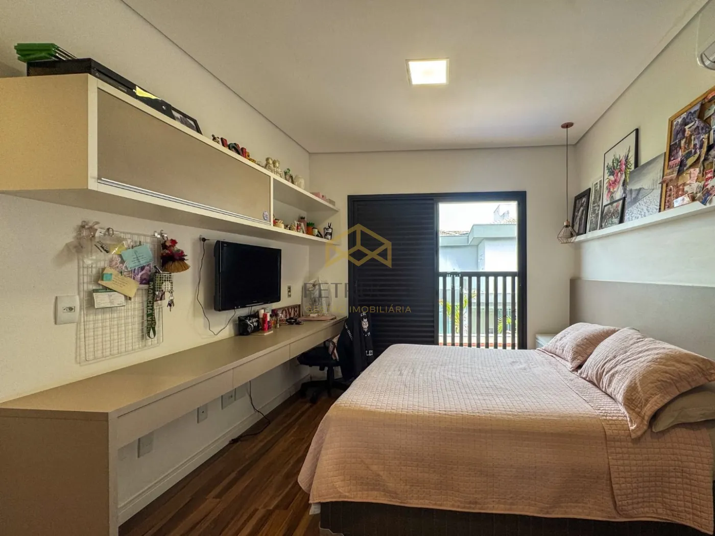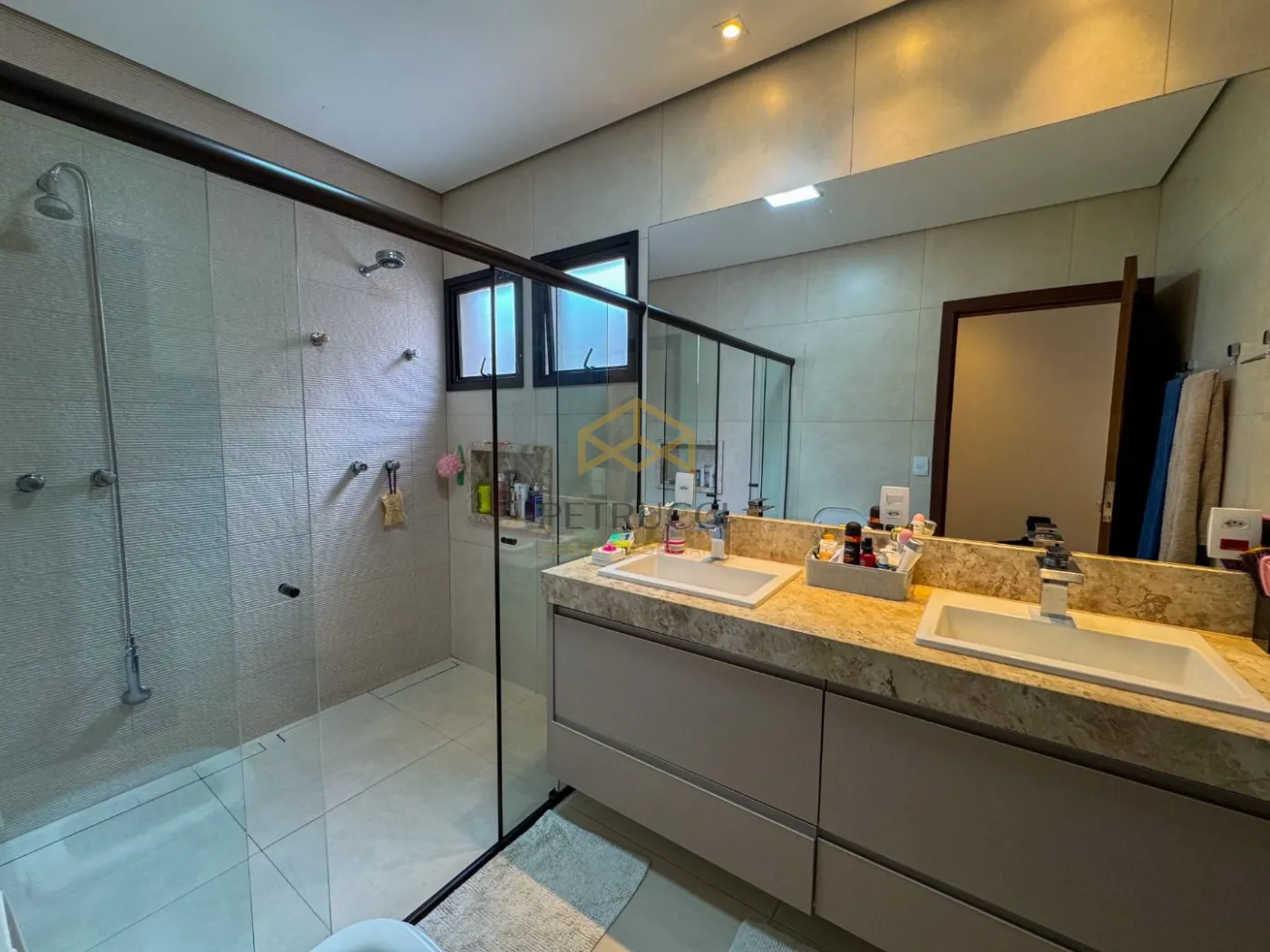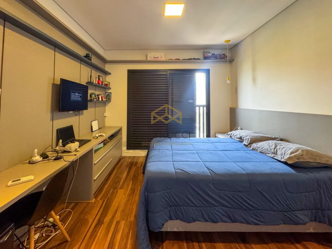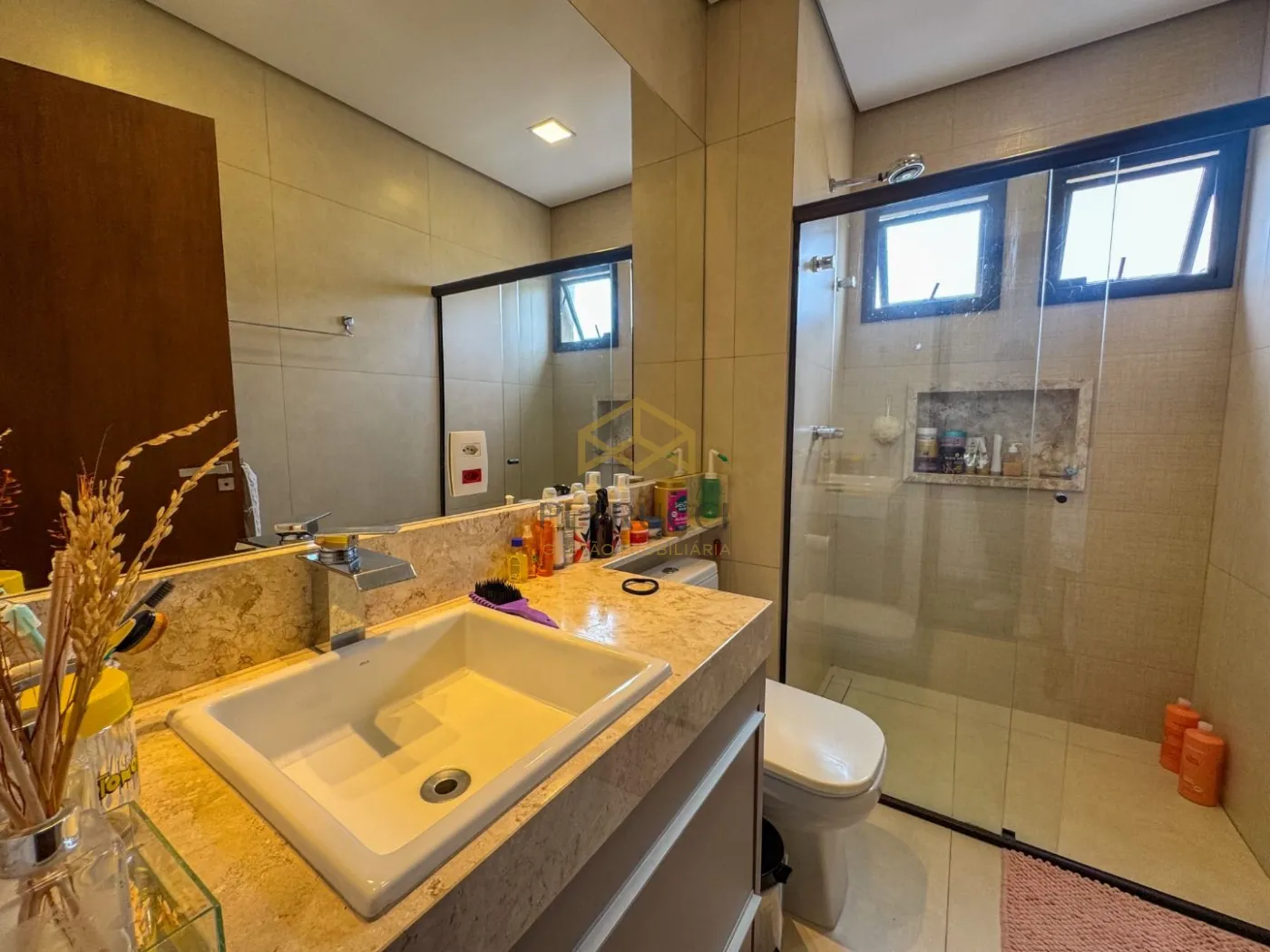 Sobrado, com 4 dormitórios, sendo 4 suítes (1 térrea/escritório), roupeiro, 3 salas (estar, jantar e TV/home), 6 banheiros (4 suítes, lavabo e externo), cozinha americana com ilha, área gourmet com churrasqueira, área de serviços/lavanderia com despensa, quintal com piscina aquecida, 4 vagas de garagem, sendo 2 cobertas.