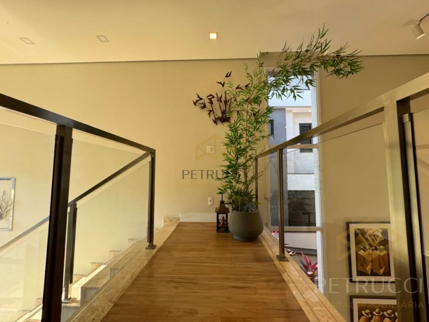 Na parte superior, hall para acesso a suíte master, com closet e hidromassagem. E sim, outro diferencial desse imóvel, as 3 suítes, são muito amplas, completas em planejados também, sem falar no projeto de automação, totalmente instalado, com 7 câmeras, sensor de presença, acionamento do ar-condicionado e iluminação pelo aplicativo. Preparada para receber energia fotovoltaica.