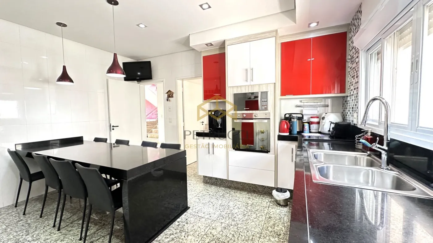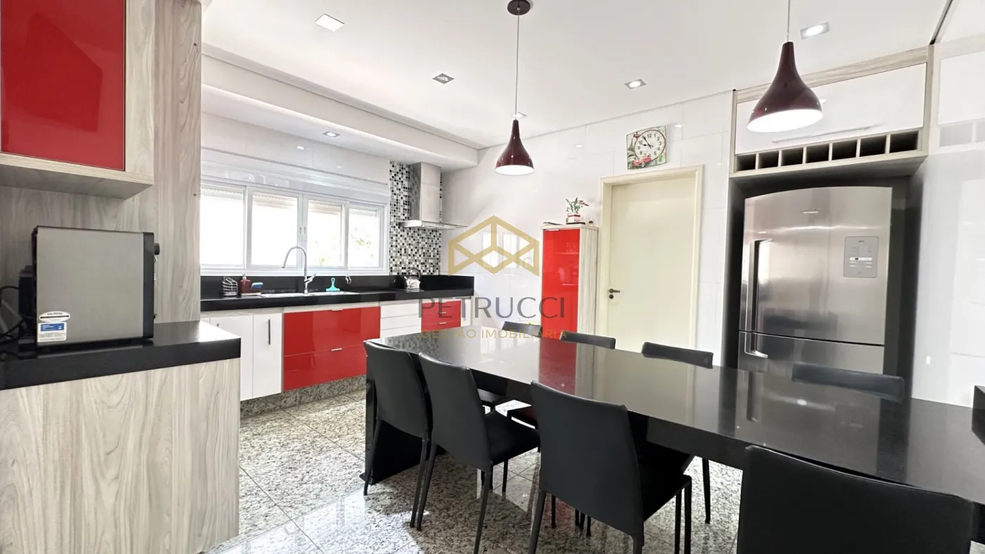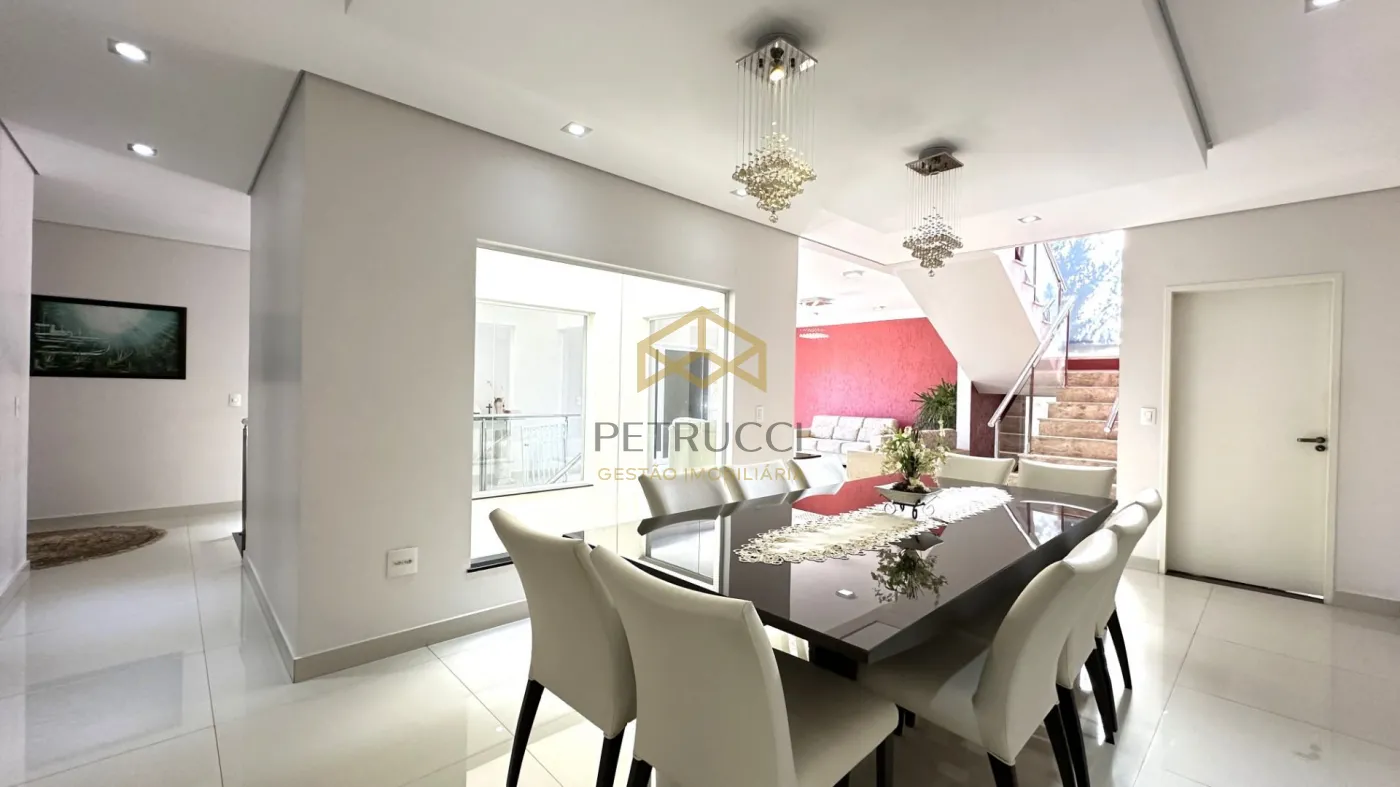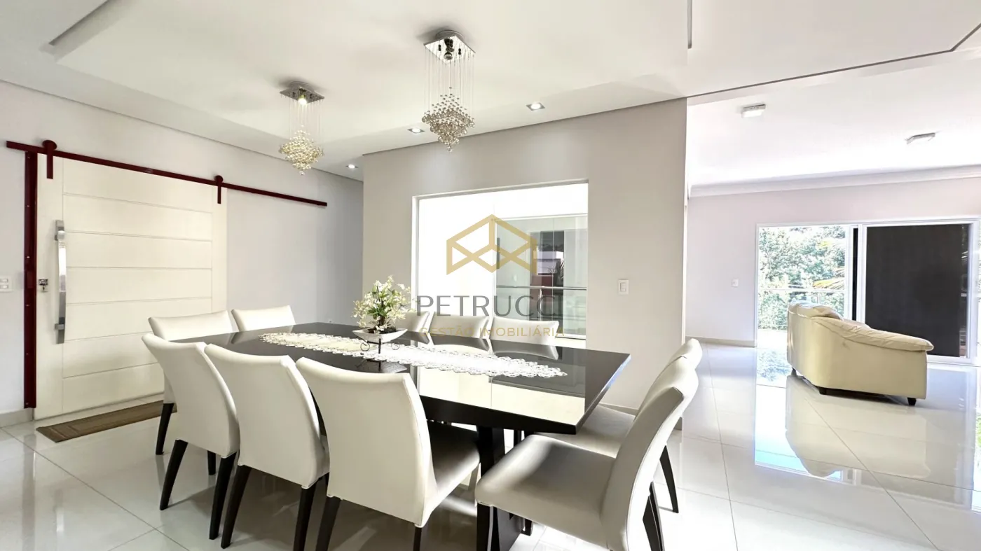 Casa de alto padrão à venda em condomínio fechado em Campinas, com 562 m² de área construída em localização privilegiada dentro do condomínio. O imóvel conta com 4 suítes amplas, todas climatizadas com ar-condicionado, copinha, na parte de cima, quarto reversível na parte de baixo, quarto de serviço, além de 1 sala espaçosa dividida em três ambientes: estar, jantar e home theater. A cozinha é planejada, e há também lavabo, quarto de serviço e 1 suíte master com hidromassagem.