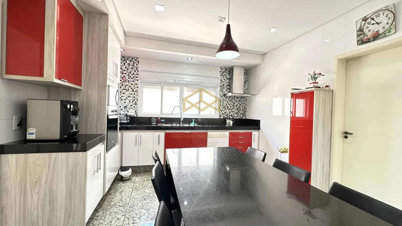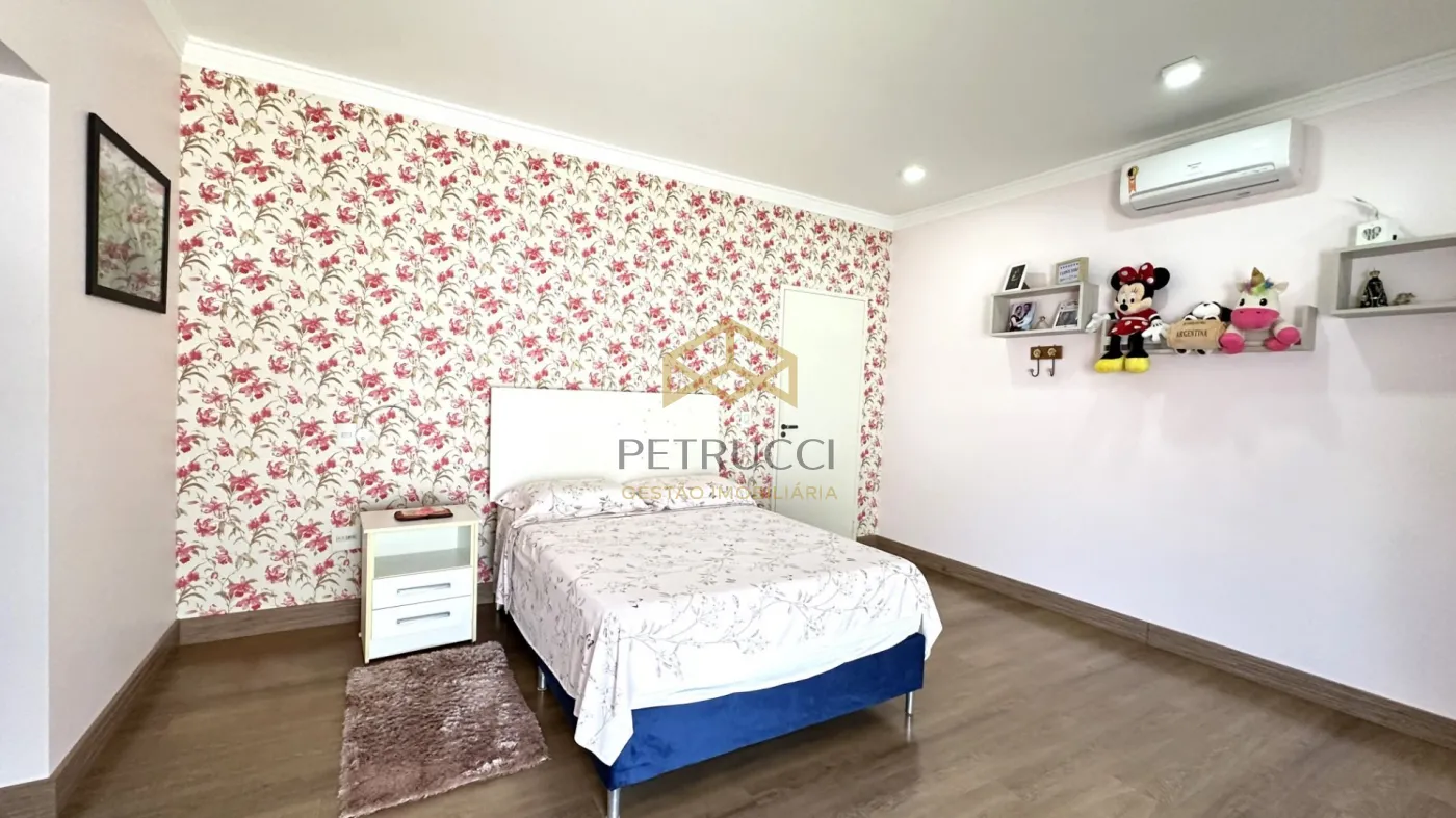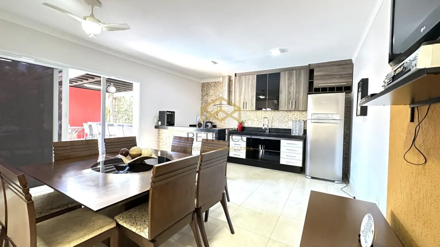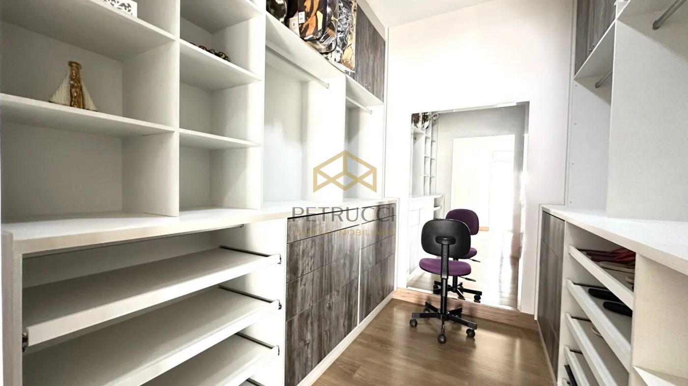 Casa de alto padrão à venda em condomínio fechado em Campinas, com 562 m² de área construída em localização privilegiada dentro do condomínio. O imóvel conta com 4 suítes amplas, todas climatizadas com ar-condicionado, copinha, na parte de cima, quarto reversível na parte de baixo, quarto de serviço, além de 1 sala espaçosa dividida em três ambientes: estar, jantar e home theater. A cozinha é planejada, e há também lavabo, quarto de serviço e 1 suíte master com hidromassagem.