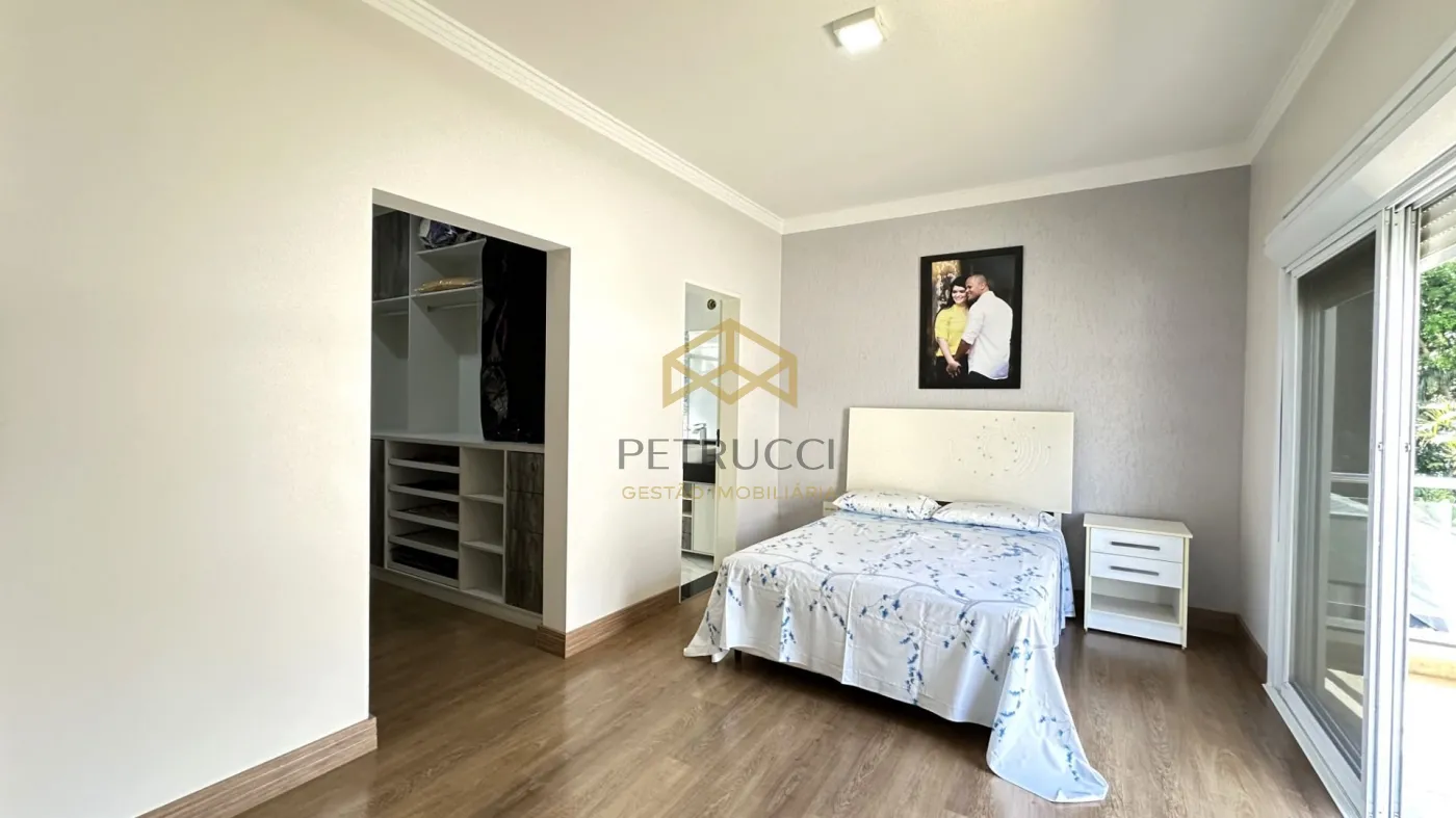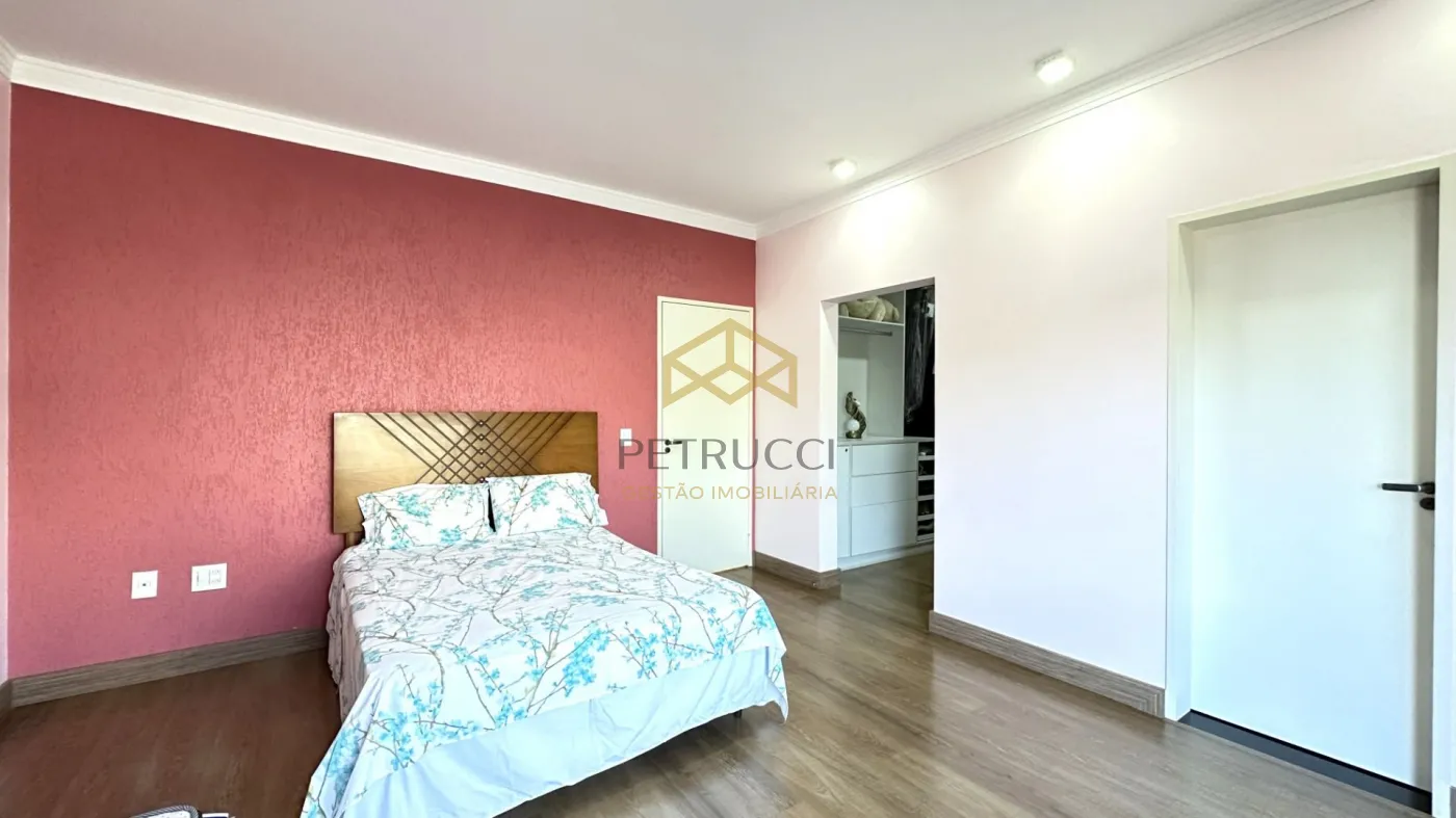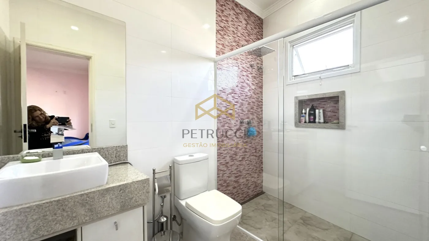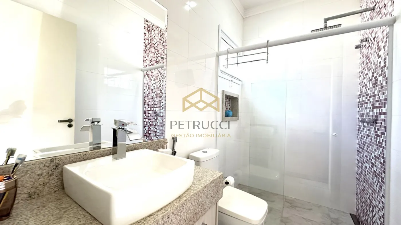 Casa de alto padrão à venda em condomínio fechado em Campinas, com 562 m² de área construída em localização privilegiada dentro do condomínio. O imóvel conta com 4 suítes amplas, todas climatizadas com ar-condicionado, copinha, na parte de cima, quarto reversível na parte de baixo, quarto de serviço, além de 1 sala espaçosa dividida em três ambientes: estar, jantar e home theater. A cozinha é planejada, e há também lavabo, quarto de serviço e 1 suíte master com hidromassagem.