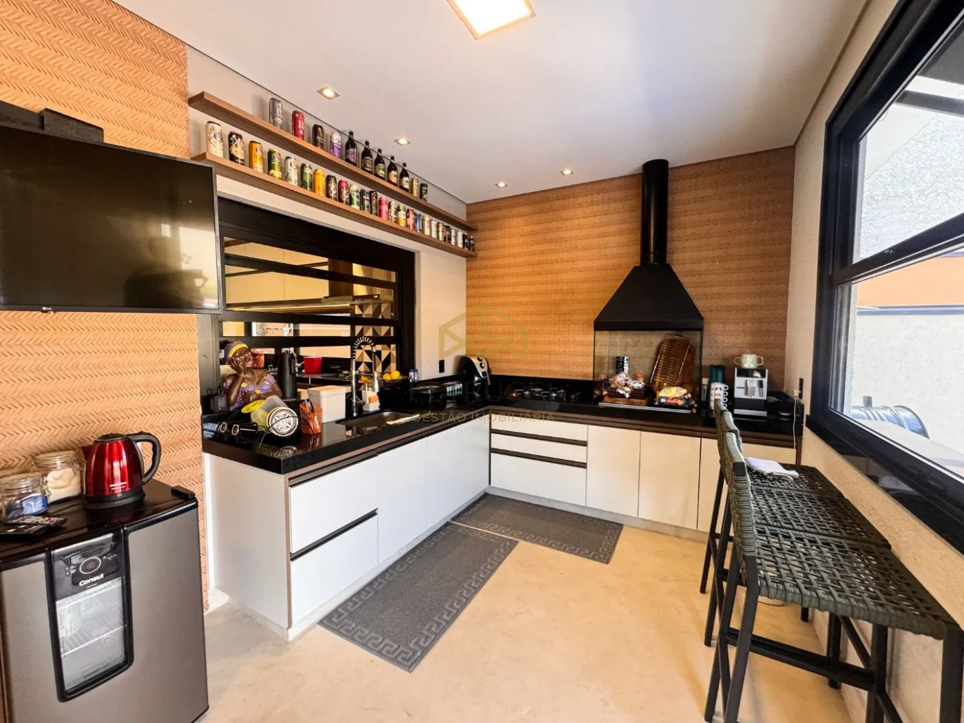 No piso térreo, os ambientes são totalmente integrados, com sala para dois ambientes e imponente pé-direito de 6,5m², lavabo, cozinha equipada, despensa interna e externa, além de área de serviço. O espaço gourmet é um dos grandes destaques, com piscina aquecida, privacidade total, banheiro externo e estrutura completa para receber com conforto e sofisticação.