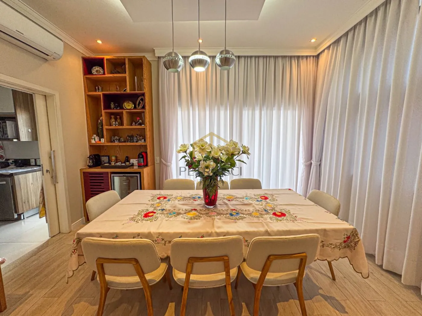 Sobrado lindo, todo mobiliado e decorado. Acabamento de primeira, ambientes amplos. Está localizado na parte alta do condomínio. São 3 suítes, living para três ambientes, sala de TV, 296m de construção, ambientes amplos e arejados. Agende sua visita com um de nossos corretores!