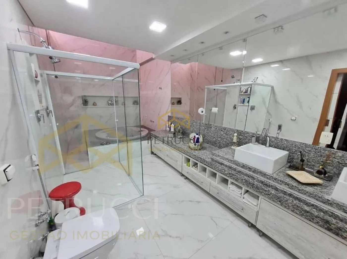 Linda casa de alto padrão em Campinas, com 750 m² de construção sendo 5 quartos, 4 suítes, com armário planejado, closet amplo, sala ampla, cozinha americana, espaço gourmet e piscina. Bairro tranquilo, com tudo ao redor, mercearia, mercado.