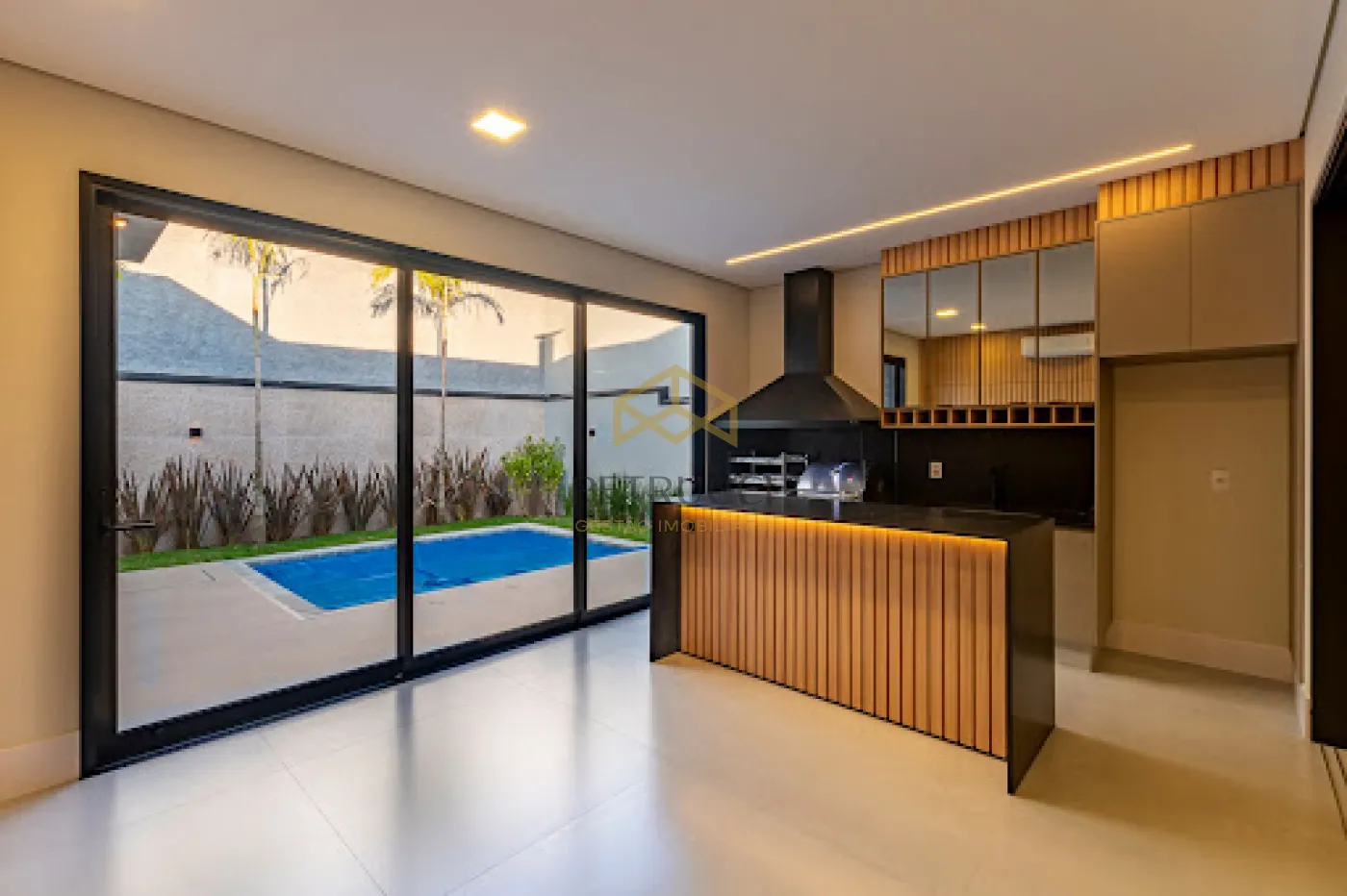 Casa térrea com projeto moderno e funcional! Com 3 suítes amplas, todas com closet, escritório, lavabo, vestiário e depósito. A área social integra cozinha e espaço gourmet com esquadria deslizante que permite separar os ambientes quando necessário. Piscina aquecida, aquecimento solar, sistema fotovoltaico e irrigação automatizada. Garagem para 4 carros com carregador de carro elétrico. Sala com pé-direto duplo e ar condicionado cassete de 24.000 BTUs. Cozinha completa com eletrodomésticos.