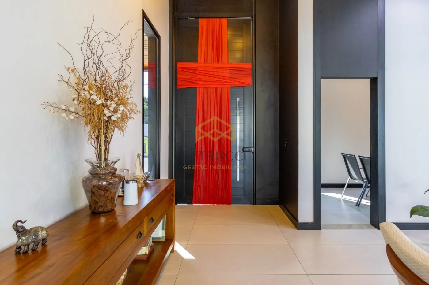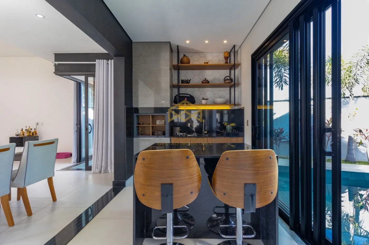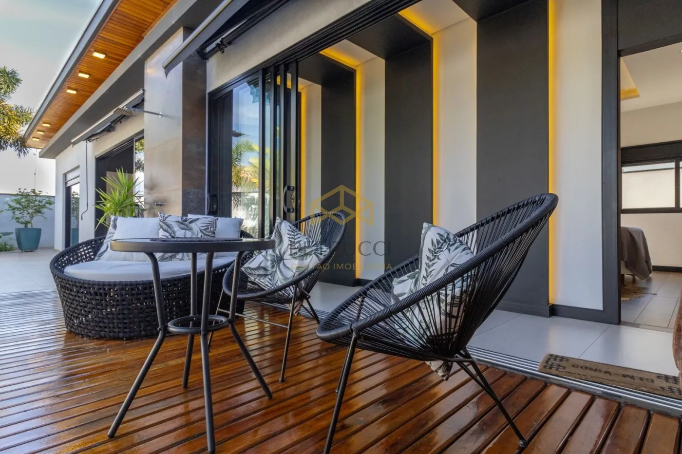 O imóvel possui 3 suítes todas com closet e persianas automatizadas com controle remoto, escritório para home office com ponto de ar condicionado, lavabo, sala de estar, jantar, cozinha em ilha totalmente integradas, dois pontos de pia, sendo um na ilha, uma área gourmet com churrasqueira e bancada em mármore, totalmente moderna e sofisticada integrada com os outros ambientes, piscina com hidro e iluminação no controle remoto, lavanderia, fachada imponente, porta pivotante com fechadura eletrônica, iluminação em LED em todo o imóvel, piso porcelanato retificado, garagem para até 4 veículos, sendo 2 cobertas e 2 descobertas, acabamentos do teto amadeirado, possui entrada independente pelo corredor externo, uma casa para pessoas e famílias exigentes!