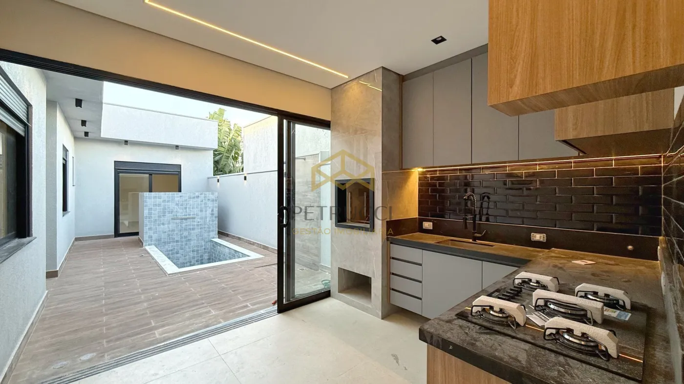 Linda casa térrea à venda com 132,63 m² de área construída em um terreno de 204 m² no condomínio Jardim Mantova. O imóvel conta com 3 dormitórios, sendo uma suíte com closet, além de móveis planejados em todos os ambientes, totalizando 5 banheiros ao todo. Destaque para a área gourmet integrada e a piscina privativa, ideal para aproveitar momentos de lazer com conforto e privacidade.