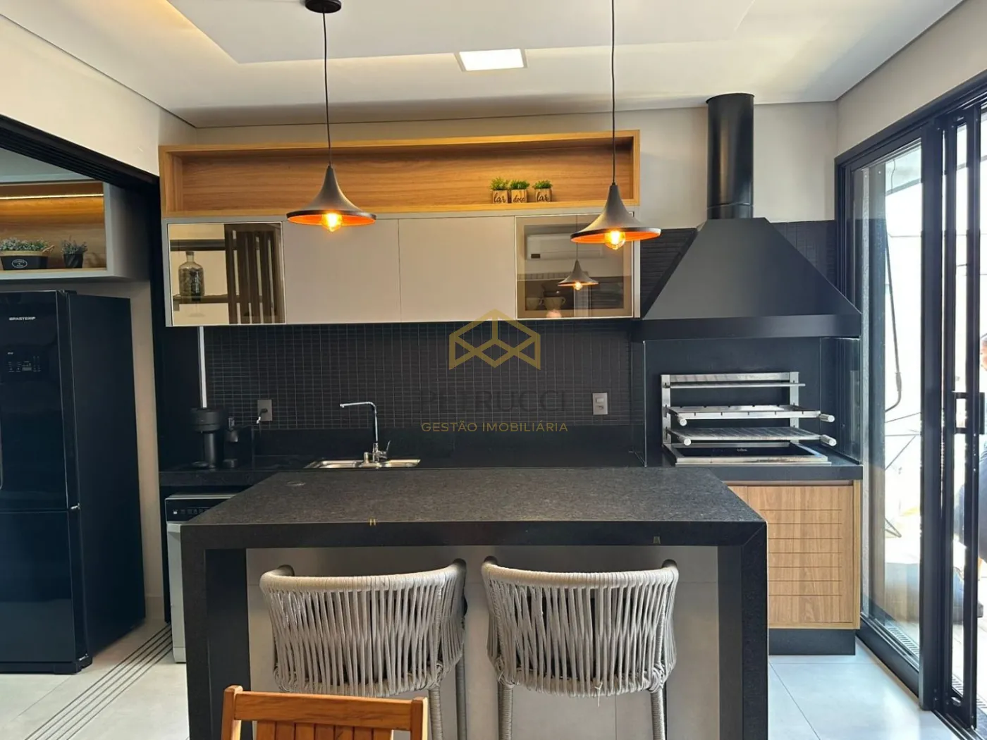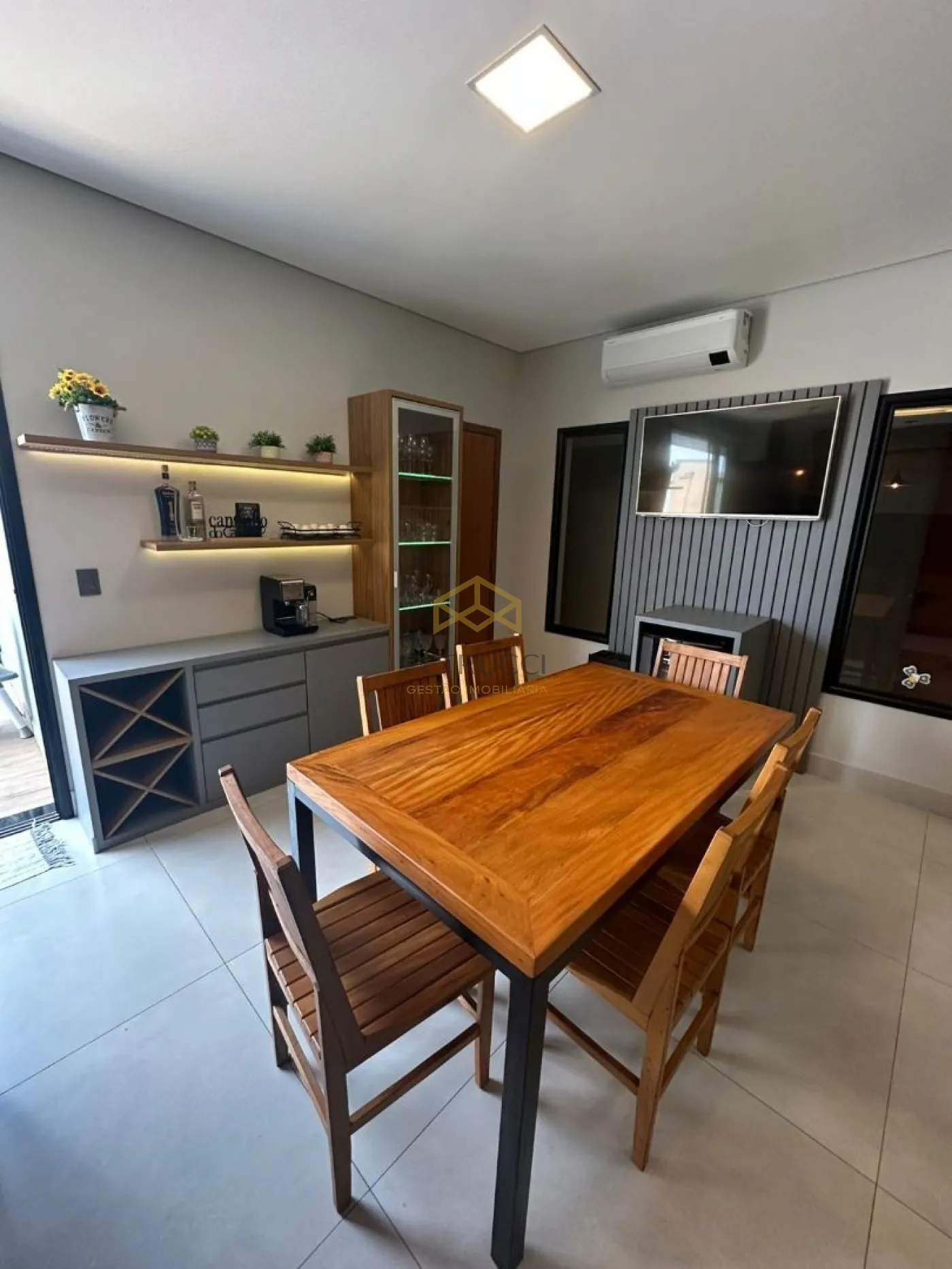 ambientes climatizados com equipamentos Samsung e Elgin (Dual Inverter e Inverter), totalizando cinco aparelhos: suíte (12.000 BTU), quartos (9.000 BTU cada), gourmet (12.000 BTU) e sala (30.000 BTU).A cozinha é equipada com cooktop, coifa e forno elétrico. A lavanderia e a despensa são independentes, além de armário externo para apoio e organização.