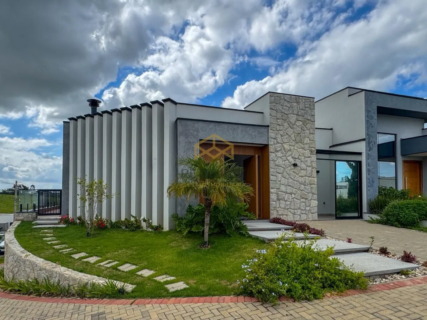 Casa sofisticada no Condomínio Laguna, com projeto contemporâneo, acabamentos de alto padrão e ambientes integrados bem iluminados. Localizada em terreno de esquina com 307m².