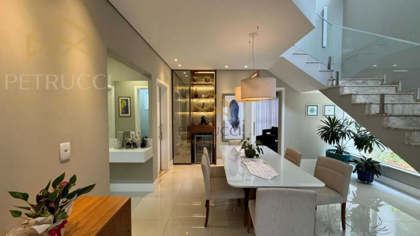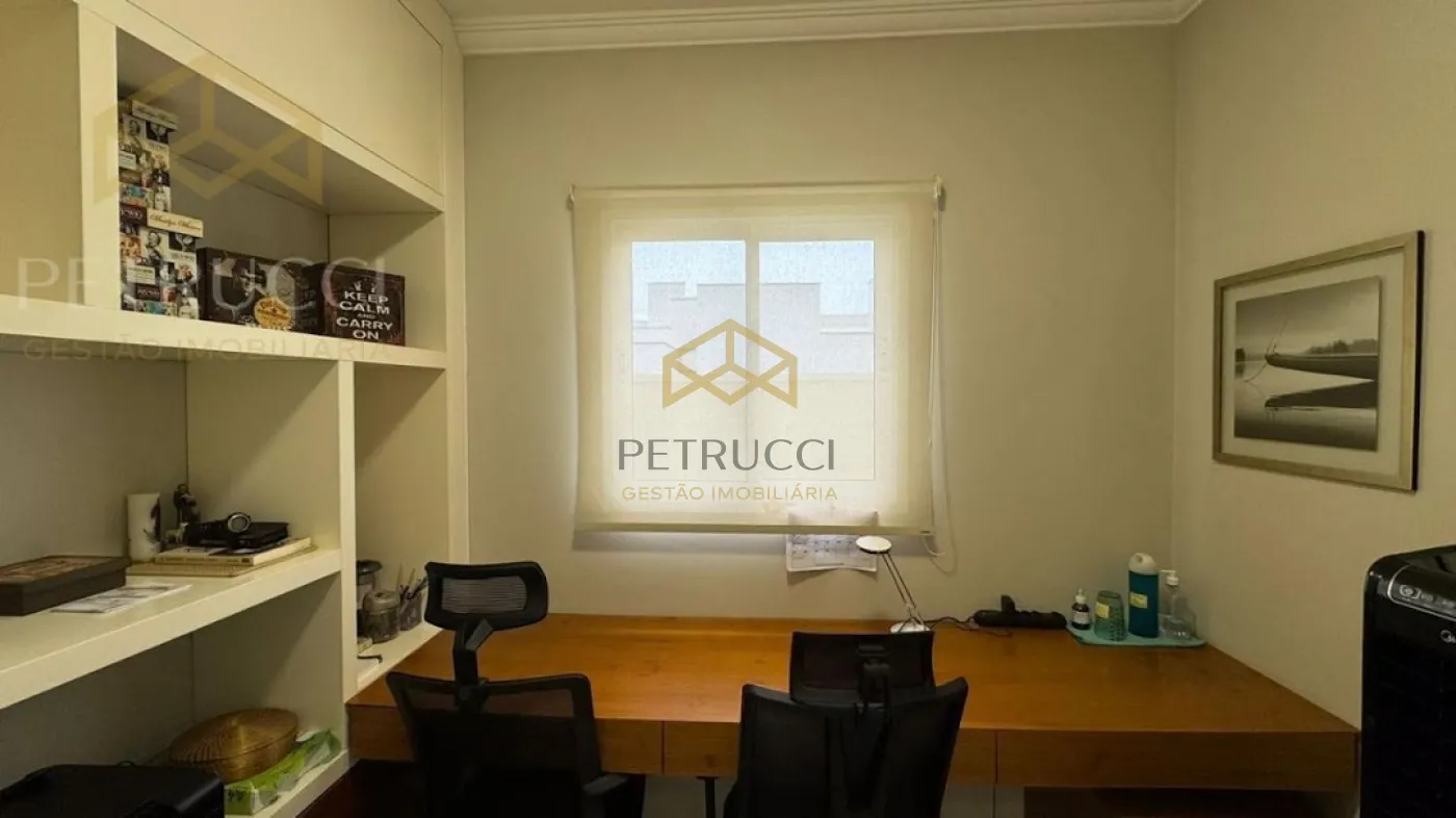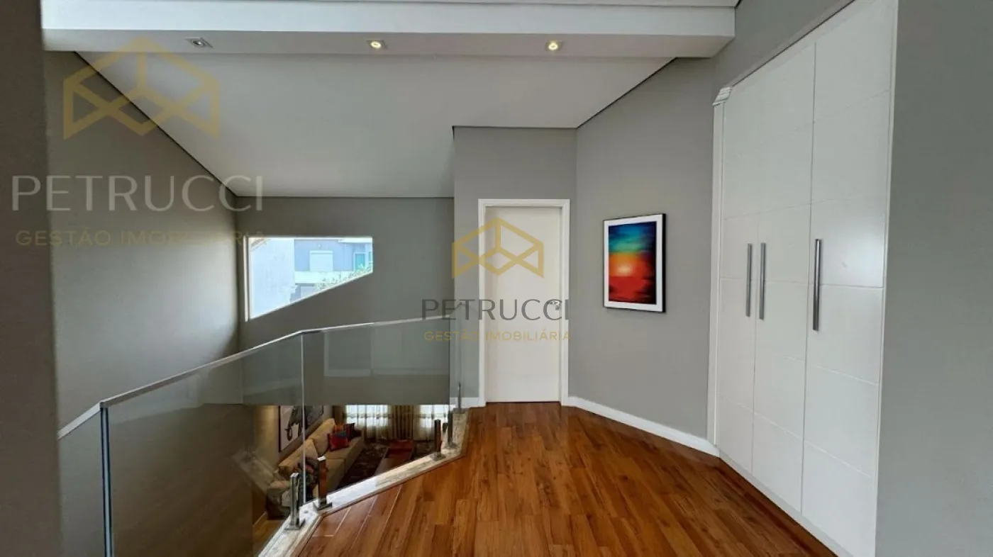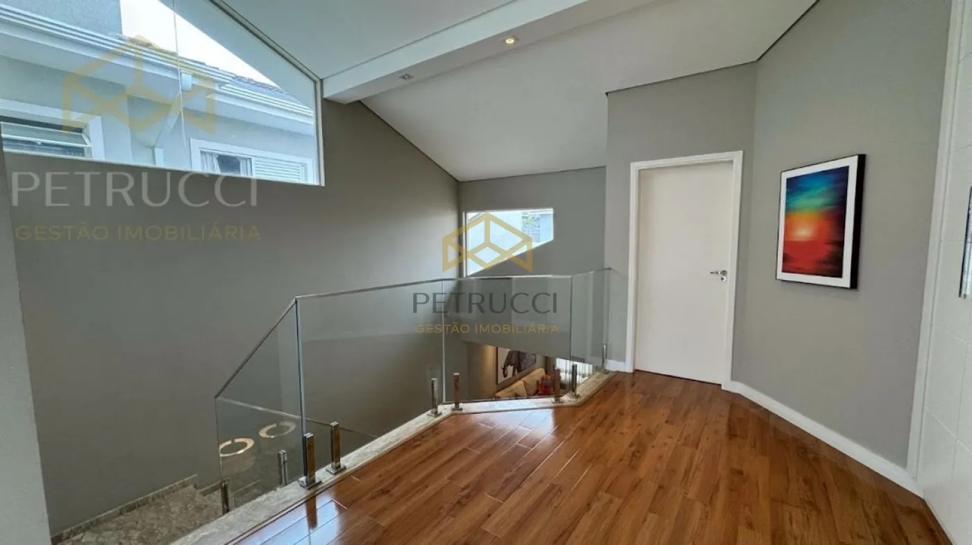 No piso superior, encontramos 3 suítes, todas climatizadas e com planos, que por sinal são de excelente qualidade e um espaço com fechamento em vidro, atualmente utilizado como brinquedoteca porém pode ser convertido para um segundo escritório ou para a necessidade de seu novo proprietário. A casa possui acabamento diferenciado, uma linda fachada e tudo de melhor que a cidade de Valinhos pode oferecer, fácil acesso à rodovias e serviços. Condomínio com lazer completo.