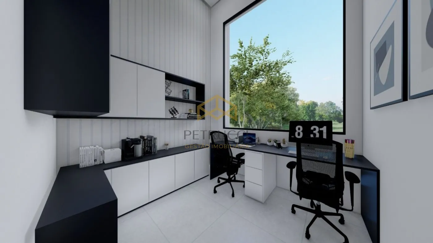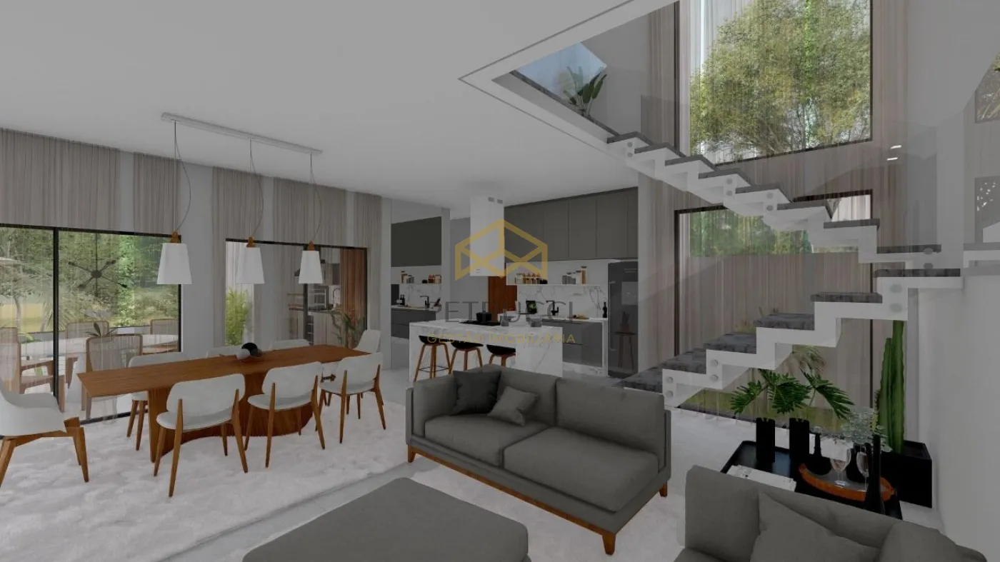 Casa sobrado com ampla fachada, área gourmet integrada com cozinha e living. Construção de 232m² composta por 3 suítes com closet, sala de estar/tv, jantar, escritório, lavabo e piscina com borda infinita com vista privilegiada para Fazenda Santana onde se encontra o Observatório Abrahão de Moraes. Acabamento de primeira linha, Infraestrutura para ar-condicionados, aquecimento central e aquecimento de piscina! 4 vagas de garagem, sendo 2 cobertas.