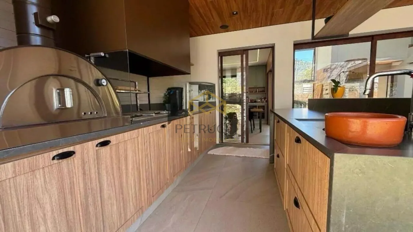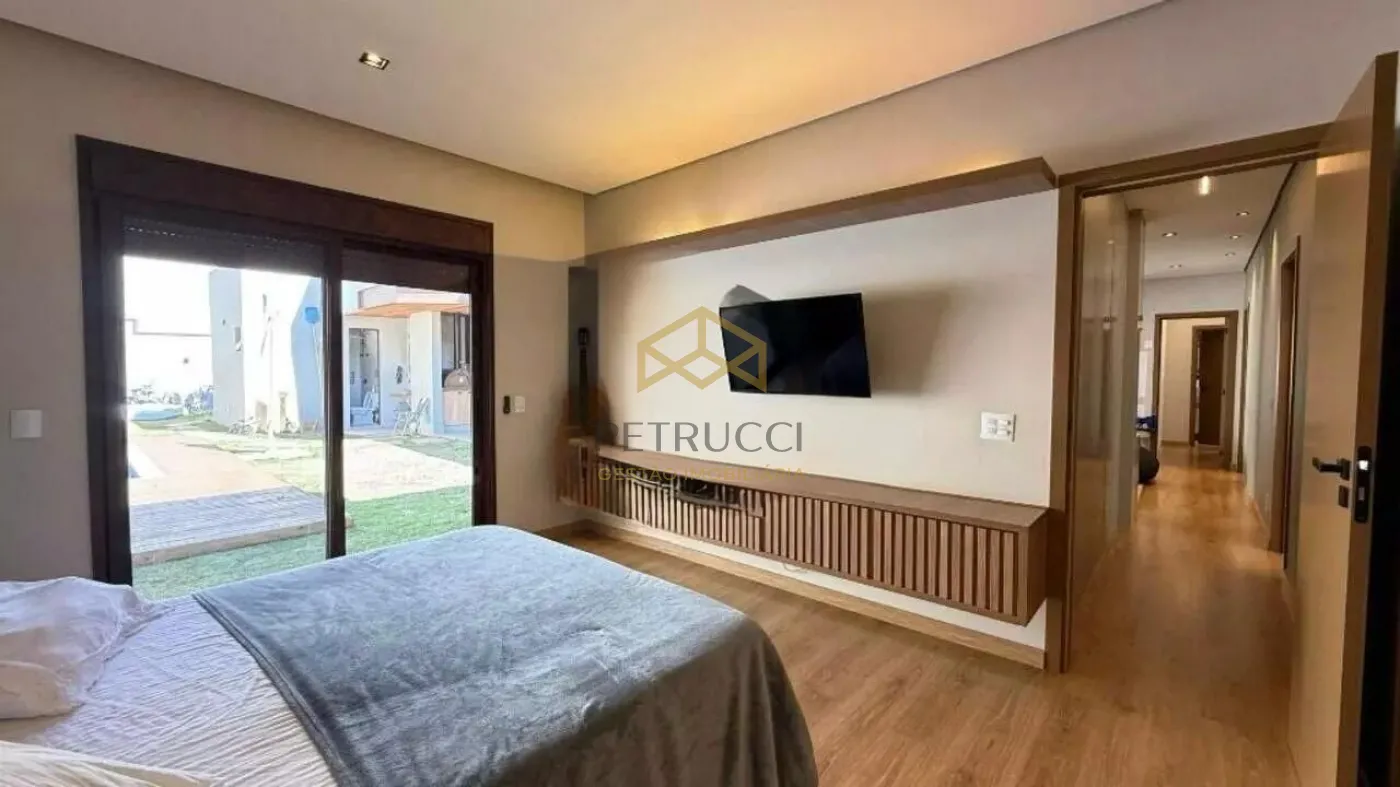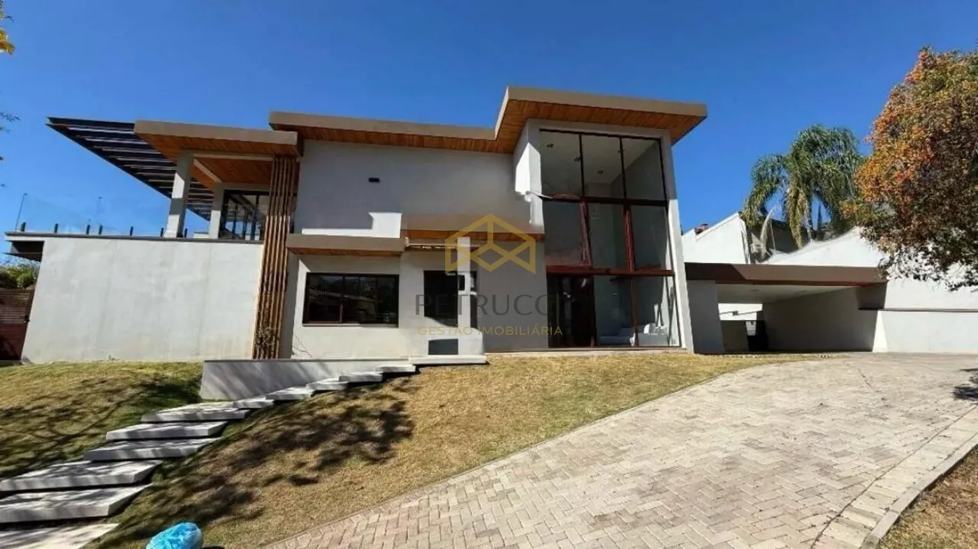 Uma belíssima casa no Estância Marambaia em Vinhedo. A casa fica toda na parte térrea. Subindo as escadas um mezanino bem espaçoso, todo avarandado. A casa dispõe de 4 suítes com armários planejados, sendo a master com closet,. Living com pé direito alto, integrado a cozinha e a área gourmet. Cozinha totalmente planejada. A área gourmet oferece espaço de varanda, piscina aquecida, churrasqueira à carvão e forno de pizza. Além de um belo quintal gramado. Ambientes climatizados. O Condomínio está localizado em área central, conta com clube, piscinas, quadras de tênis, academia, salão de festas e churrasqueiras. Possui 14 lagos, pista de skate, pista de cooper, playgrounds e ruas arborizadas monitoradas por câmeras de segurança.
