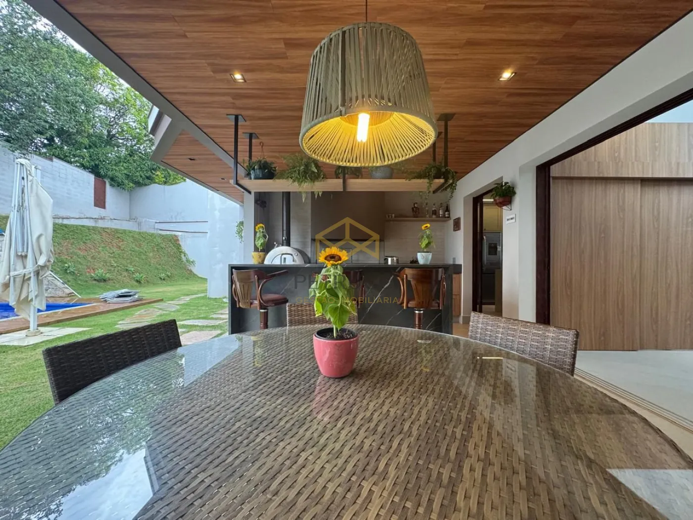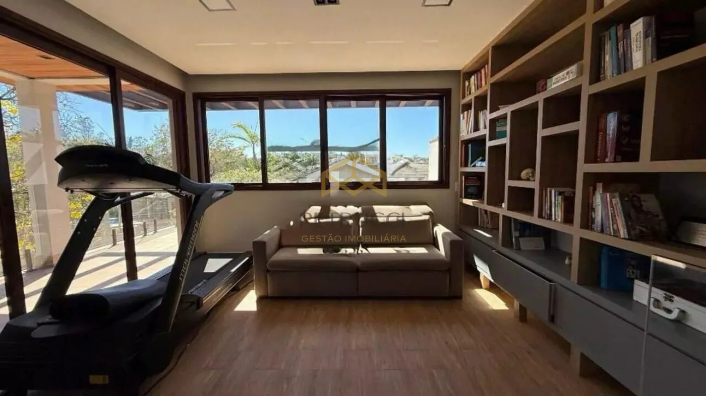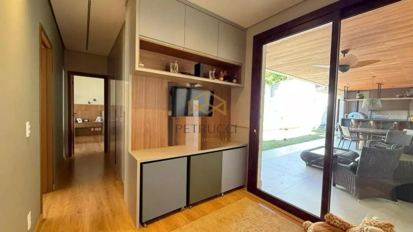 Uma belíssima casa no Estância Marambaia em Vinhedo. A casa fica toda na parte térrea. Subindo as escadas um mezanino bem espaçoso, todo avarandado. A casa dispõe de 4 suítes com armários planejados, sendo a master com closet,. Living com pé direito alto, integrado a cozinha e a área gourmet. Cozinha totalmente planejada. A área gourmet oferece espaço de varanda, piscina aquecida, churrasqueira à carvão e forno de pizza. Além de um belo quintal gramado. Ambientes climatizados. O Condomínio está localizado em área central, conta com clube, piscinas, quadras de tênis, academia, salão de festas e churrasqueiras. Possui 14 lagos, pista de skate, pista de cooper, playgrounds e ruas arborizadas monitoradas por câmeras de segurança.