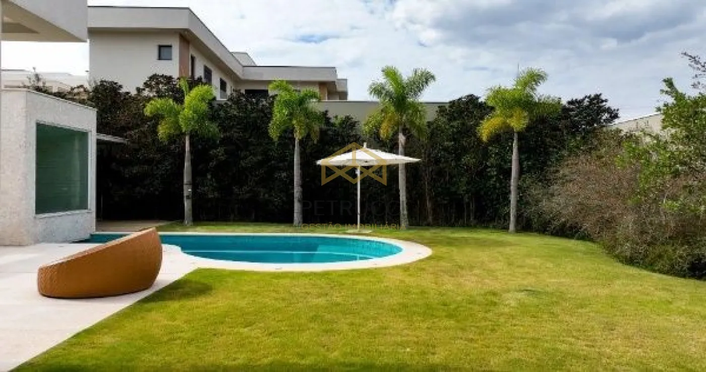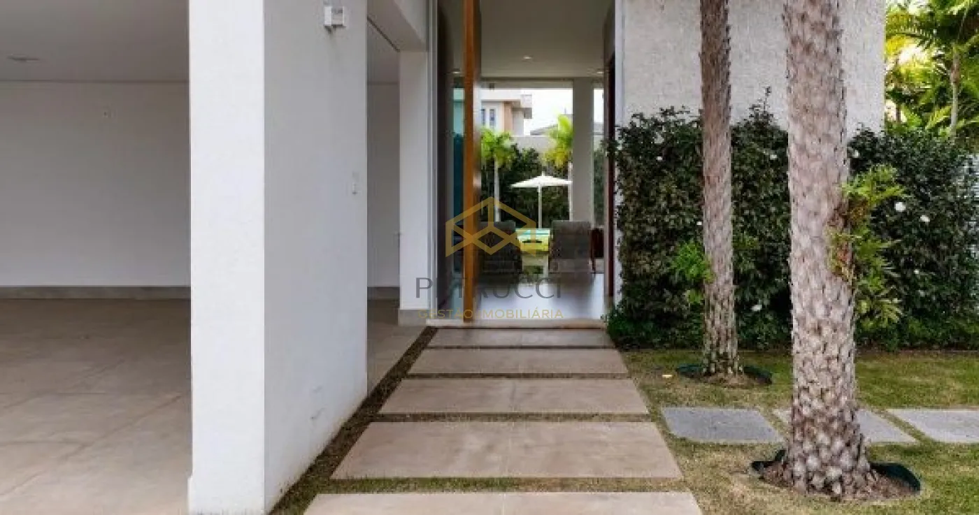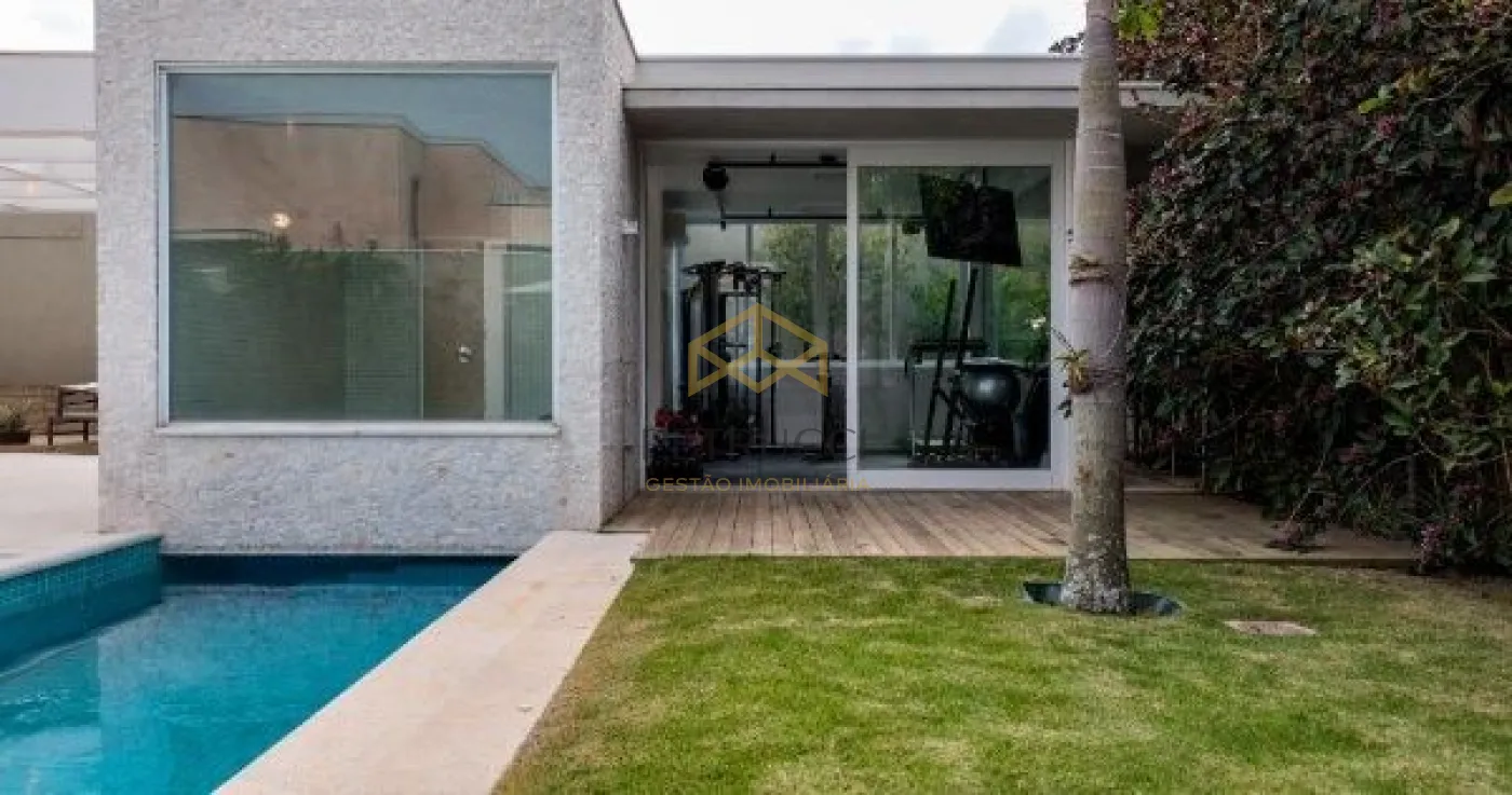Ampla casa moderna em estilo contemporâneo, com detalhes para quem aprecia sofisticação, tranquilidade e comodidade. A casa possui 4 dormitórios, sendo 3 suítes térreas. A Suíte Master conta com sala de banho, com TV e ofurô. Sala de estar com pé direito duplo, lareira e jardim de inverno. Construída em conceito ecologicamente correto com extensa área de iluminação natural. Jardim com paisagismo em estilo tropical, com 250 m2, de implantação de árvores exóticas e frutíferas, e iluminação automatizada em LED. Possui, também, sistema de coleta de água de chuva com cisterna de 5.000 litros para irrigação dos jardins e áreas externas com sistema pressurizado. Churrasqueira e forno de pizza, integrada à sala de jantar e lazer da piscina. Piscina aquecida e com iluminação decorativa de LED multicor. Possui escritório, área de entretenimento, jogos e cinema no piso superior. Imóvel possui sistema de aquecimento solar de água.